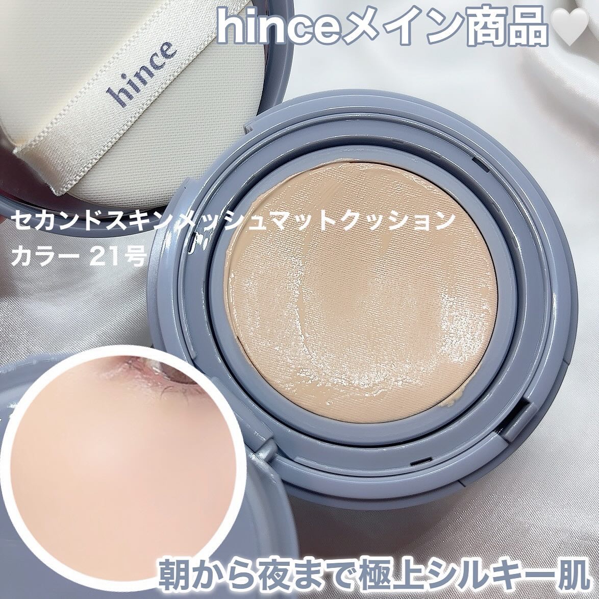 hinceセカンドスキンメッシュマットクッション 23マットに仕上がり軽いファンデ買ってみました❗マットなんだけどサラっと軽くて付け心地が良かったです‼素肌を綺麗に見せてくれて、薄いシミは隠れちゃうからなかなか優秀な印象です✨高カバーではない...