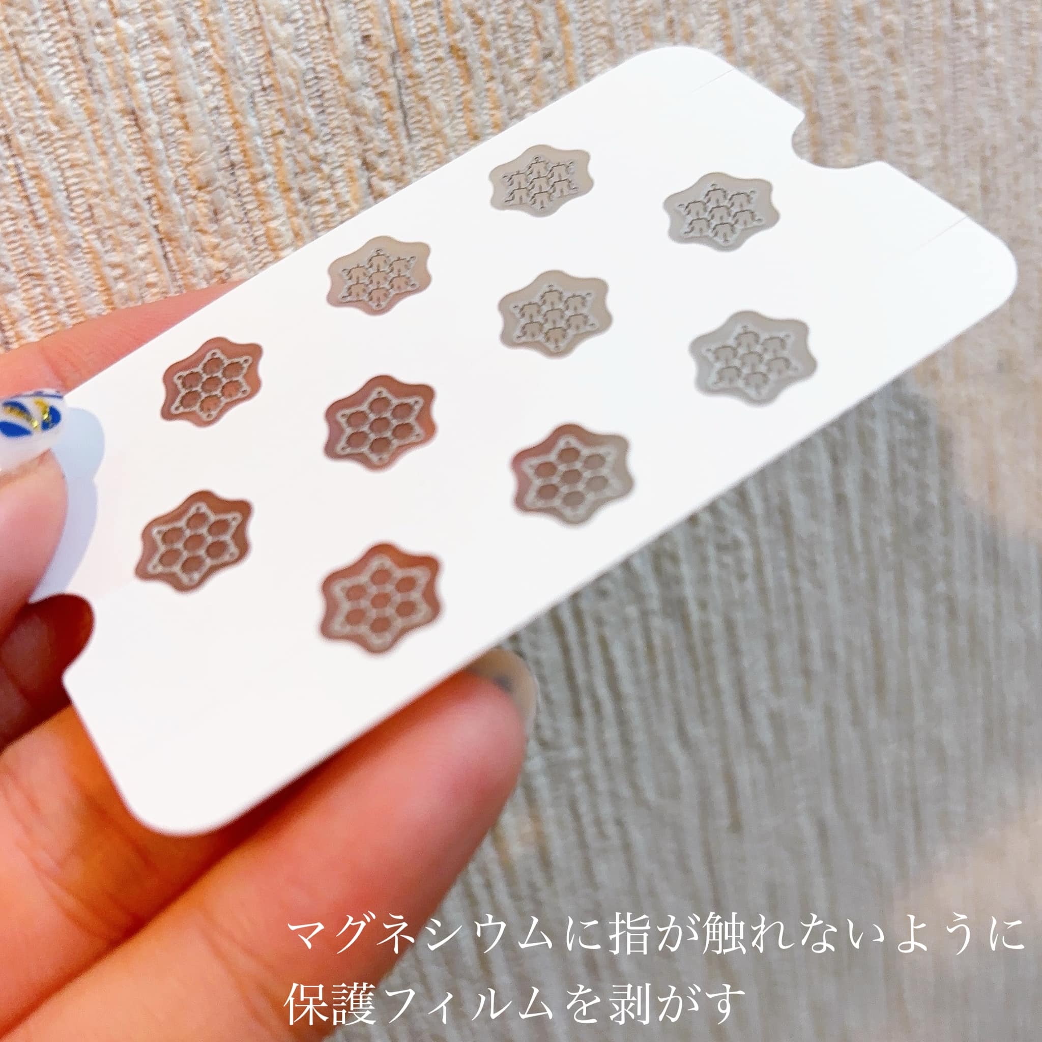 - 肌のバリア機能をサポートするマグネシウムニードル(整肌成分)を使用したパッチで、気になる部分の肌を整えます。マグネシウムは人体必須ミネラルのひとつです。敏感になった肌にもご使用いただけます。