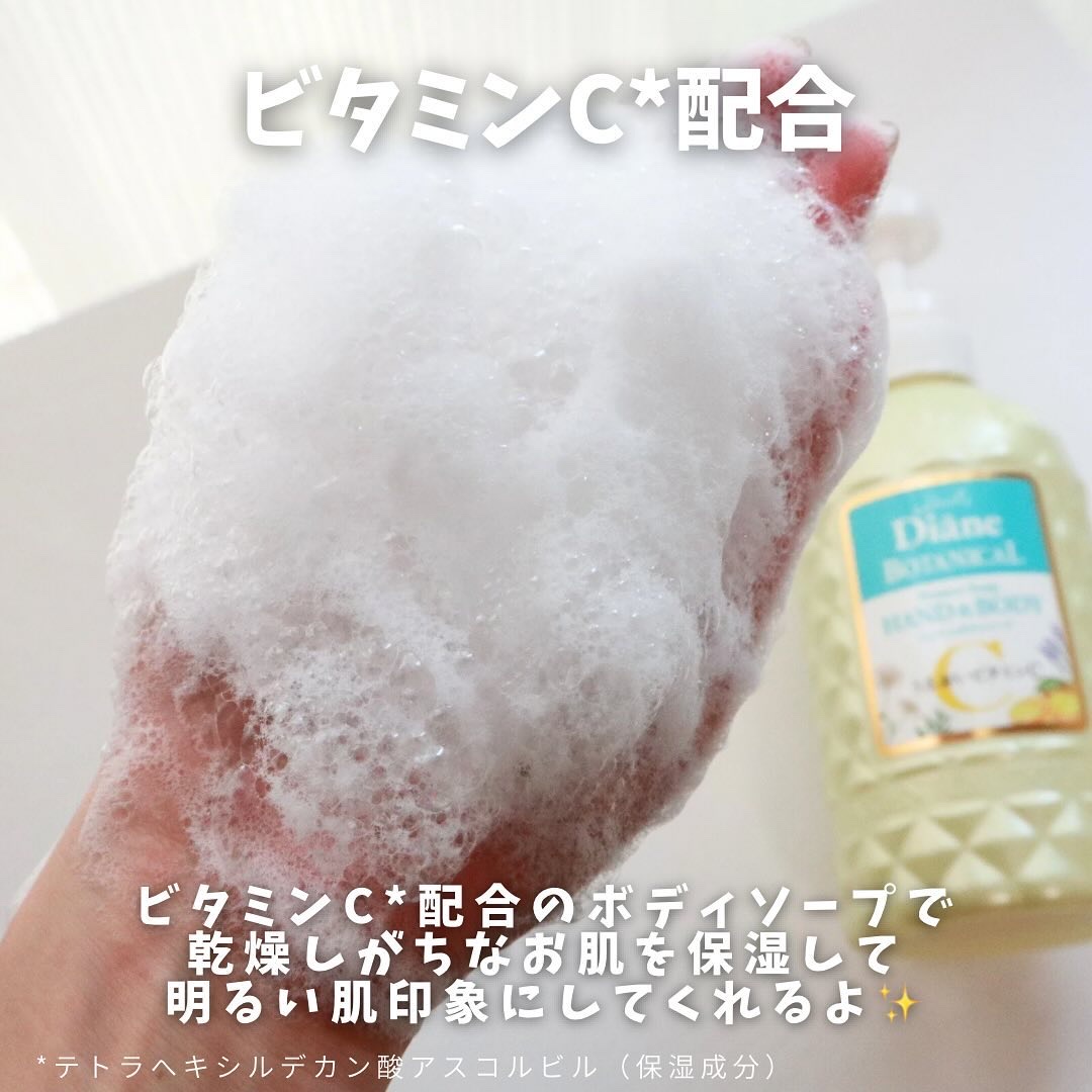 【ボタニカルハンド&ボディソープうるおいビタミンC/ダイアン】◆◇Item◆◇10種類のオーガニックボタニカルエキスとオリーブ洗浄成分配合で、敏感肌をいたわりながら優しく洗える90%以上が天然由来成分*¹のボディウォッシュです。うるおいビタミ...
