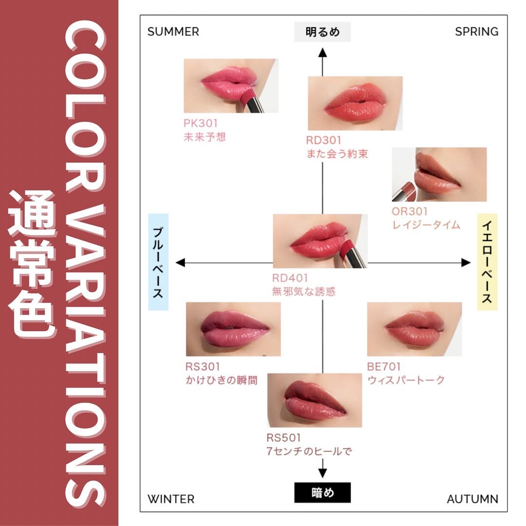 - つけるたびうるおってなめらかな“うるつや唇”が続く。 ○落ちにくい×リップケア 保湿美容成分配合 ―アラントイン、グルコシルヘスペリジン、トリエチルヘキサノイン、スーパーヒアルロン酸(アセチルヒアルロン酸 Na) ○色もち&心地よさを叶えるウォーターセンシングテクノロジー™搭載 ○塗り方次第で印象を変える「コントロール発色処方」採用 〇ほのかなフルーティフローラルの香り