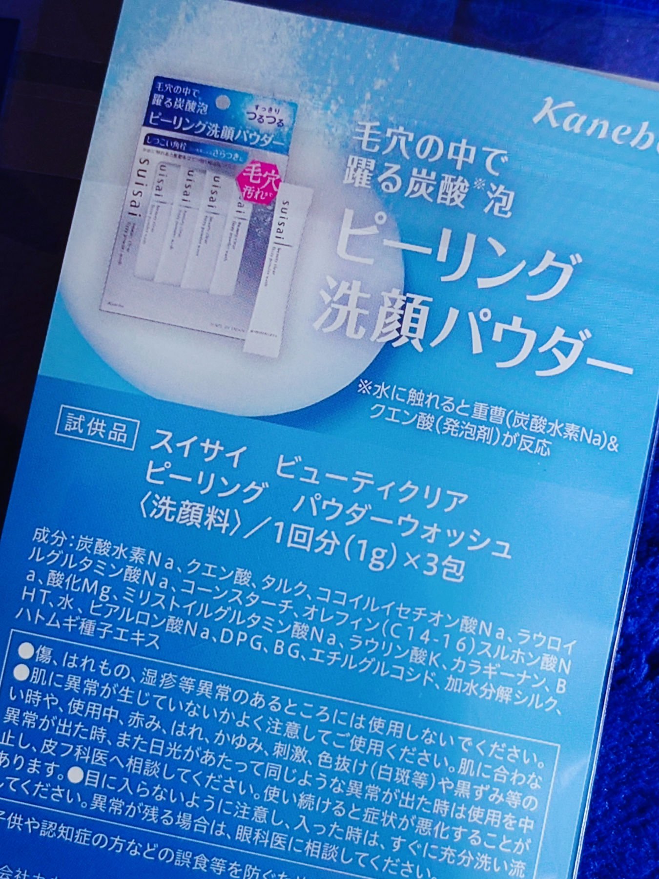 - <1回分(1g)×32包> 炭酸水素Na、クエン酸、タルク、ココイルイセチオン酸Na、ラウロイルグルタミン酸Na、コーンスターチ、オレフィン(C14-16)スルホン酸Na、酸化Mg、ミリストイルグルタミン酸Na、ラウリン酸K、カラギーナン、BHT、水、ヒアルロン酸Na、DPG、BG、エチルグルコシド、加水分解シルク、ハトムギ種子エキス <トライアル 1回分(1g)×16包> 炭酸水素Na、クエン酸、タルク、ココイルイセチオン酸Na、ラウロイルグルタミン酸Na、コーンスターチ、オレフィン(C14-16)スルホン酸Na、酸化Mg、ミリストイルグルタミン酸Na、ラウリン酸K、カラギーナン、BHT、水、ヒアルロン酸Na、DPG、BG、エチルグルコシド、加水分解シルク、ハトムギ種子エキス <SA シナモロールデザイン(限定)> 炭酸水素Na、クエン酸、タルク、ココイルイセチオン酸Na、ラウロイルグルタミン酸Na、コーンスターチ、オレフィン(C14-16)スルホン酸Na、酸化Mg、ミリストイルグルタミン酸Na、ラウリン酸K、カラギーナン、BHT、水、ヒアルロン酸Na、DPG、BG、エチルグルコシド、加水分解シルク、ハトムギ種子エキス