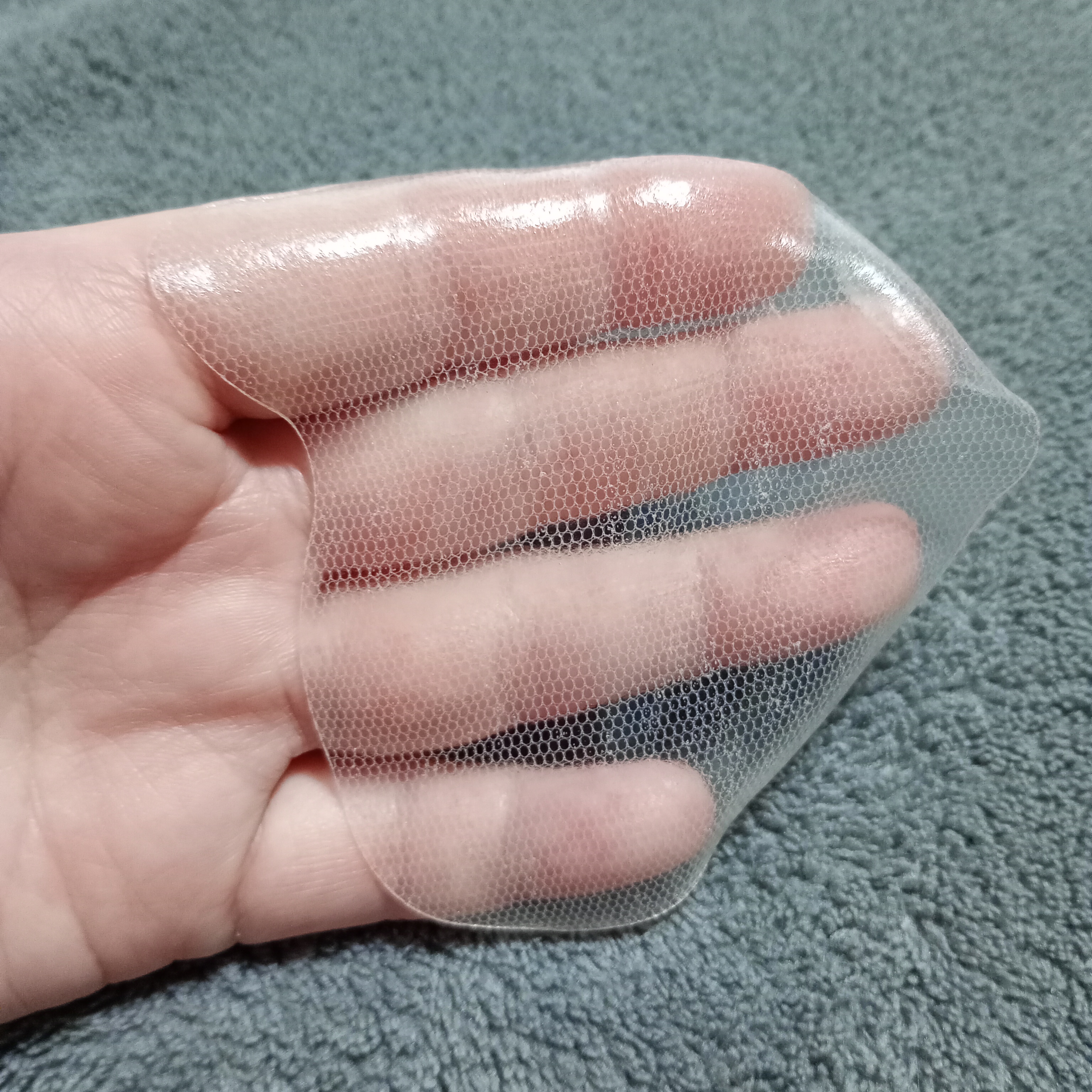 肌の体温で伸びて広がり シワにピンと伸びて密着するよ! ゲルの中にネットが入ってて それがいい感じに伸縮して5時間ぴたっとズレることもなく密着してくれてた♪ 100%水溶性だから 肌の上で美容成分が溶けて長時間 角層に浸透していくんだけど… 水溶性だから水に溶けるの🌧️ で、その溶けたゲルをスキンケアに 再利用できるの面白すぎた♻️