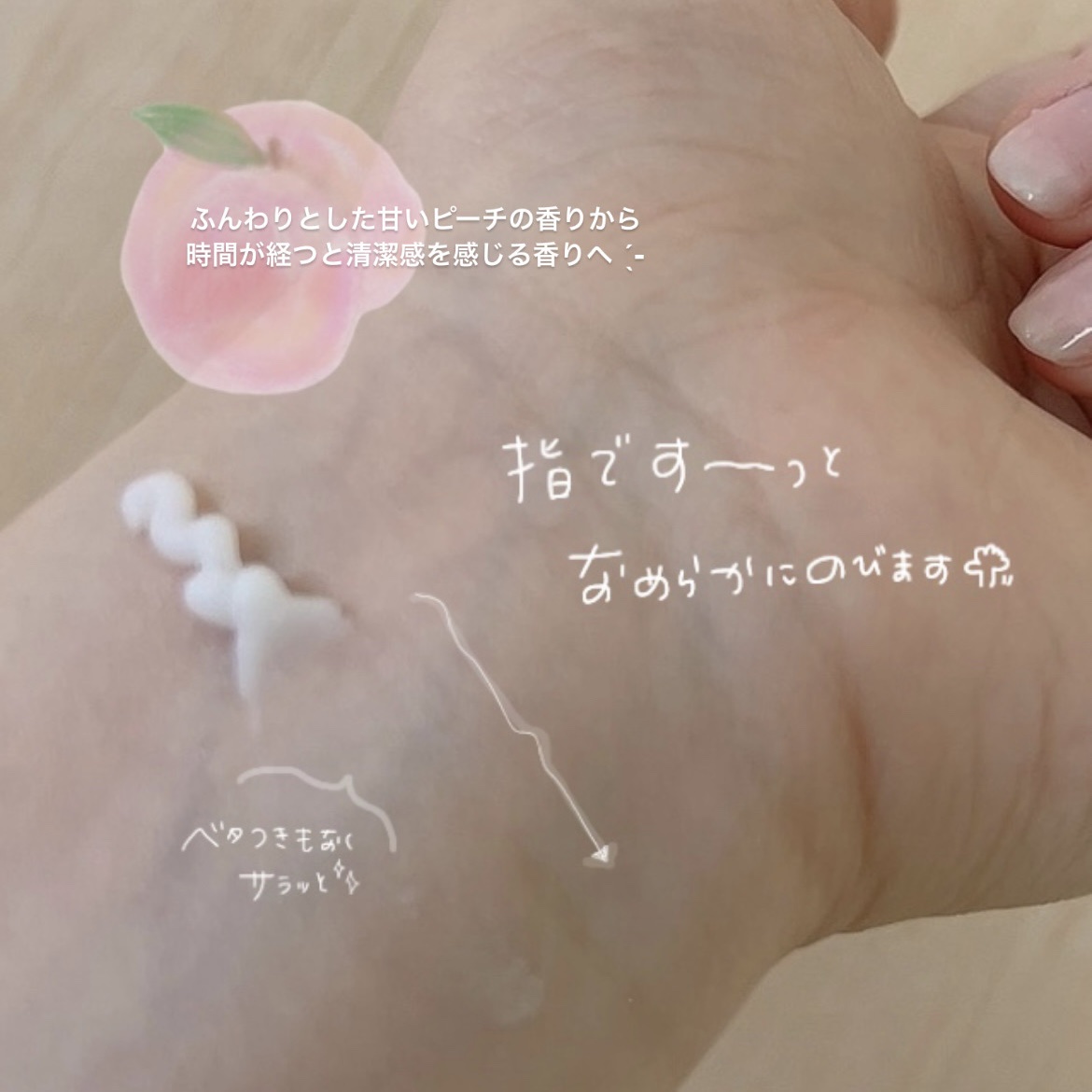 魅力的な香りをまとう 【ホワイトアプリコット】甘い桃🍑にアプリコットとムスクを調合して、爽やかさもあり丁度よい甘さ オードパルファムレベル16%の浮香率の高い持続力 シャーベットのようなテクスチャーで、ベタつきなくふわりと香ります。