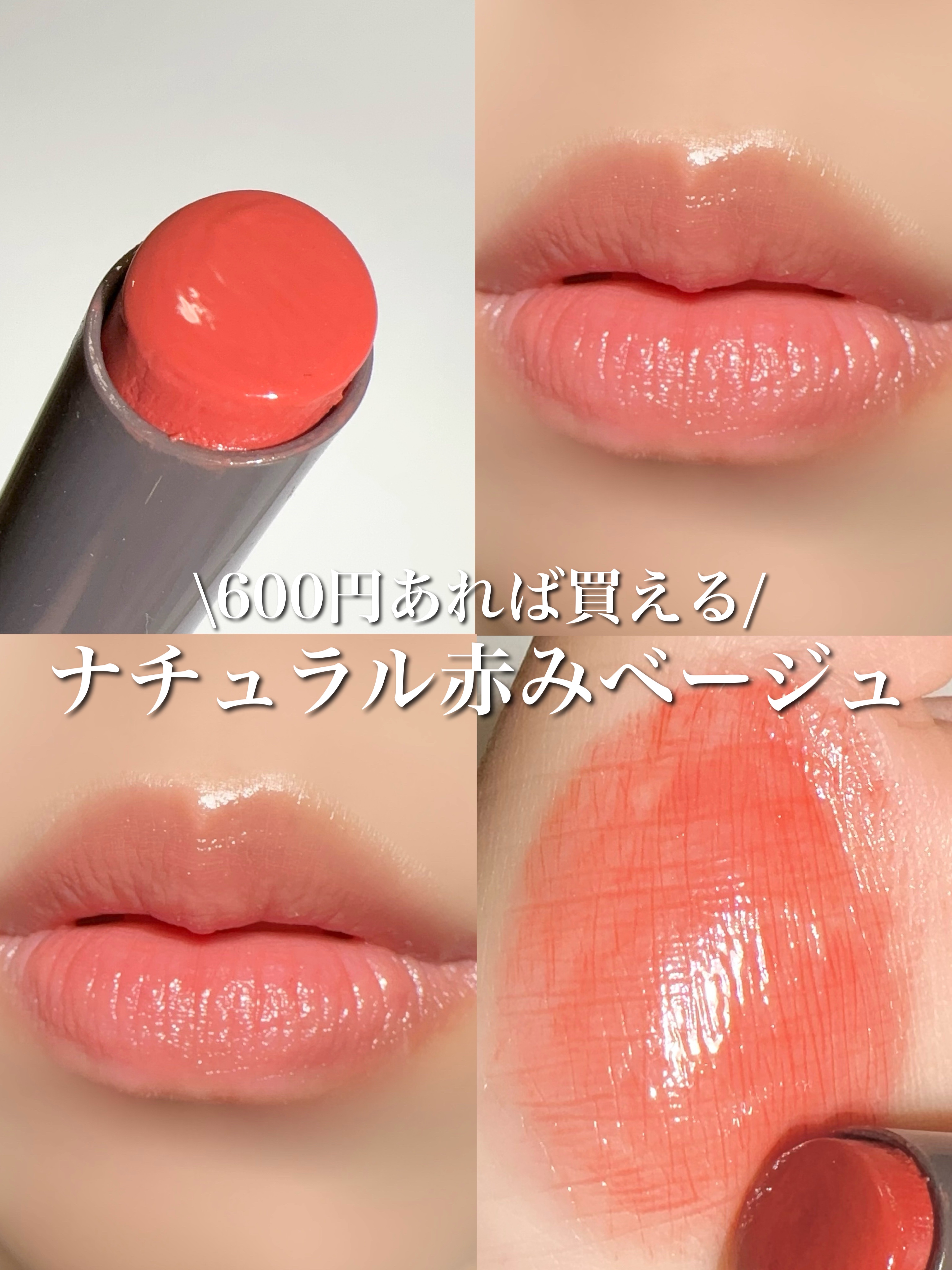 ねっちょりボリューム感あるテクスチャーだけど、ベタつきなく使いやすい。 ティントじゃない普通のグロスだから色もちは良くない。 発色ナチュラルだからこれだけでもいいけど、他のリップと合わせても可愛い!!