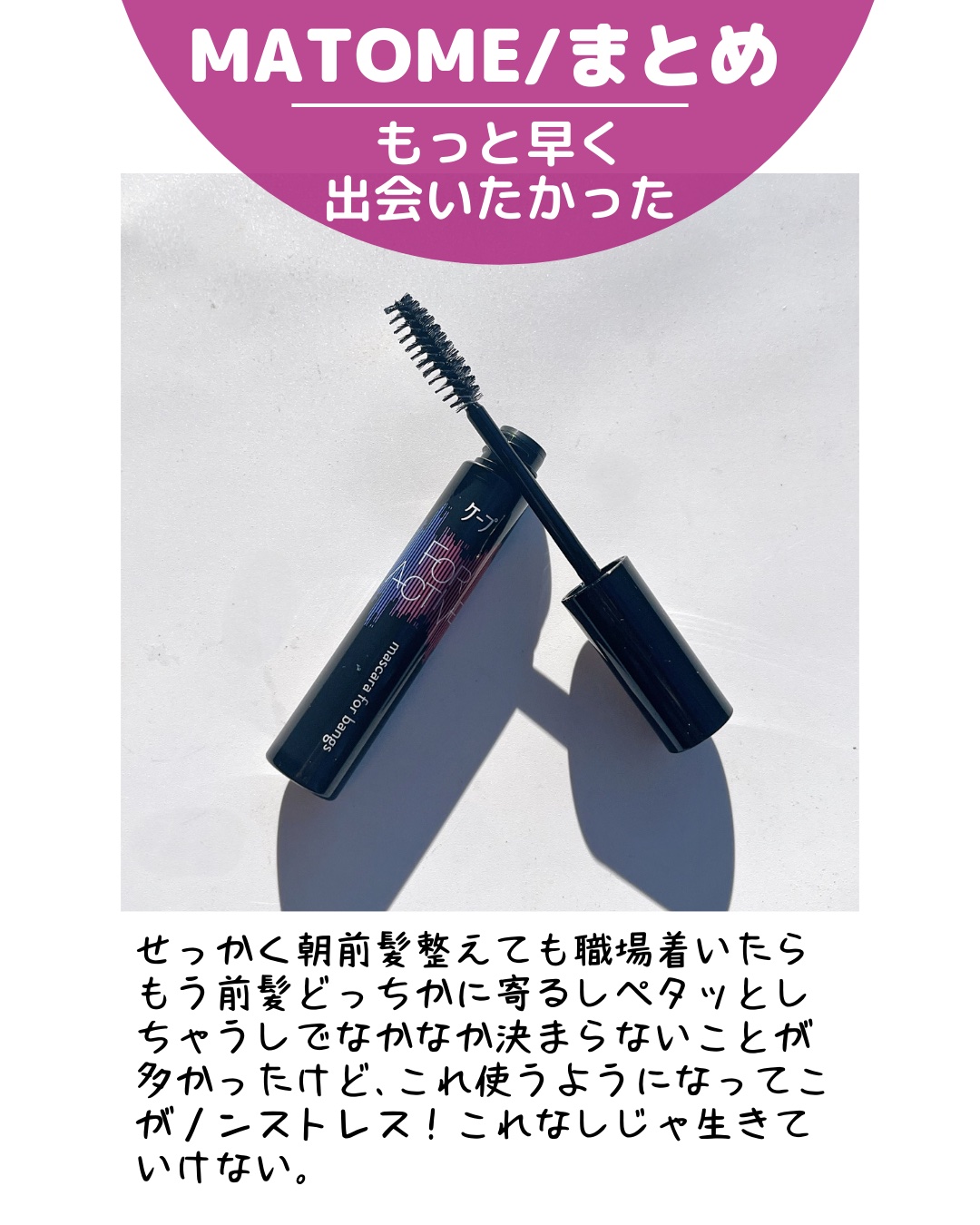 - 前髪特化型ヘアマスカラ。ケープ フォーアクティブならではのキープ力で、どんな前髪も夕方までしっかりホールド。 前髪フィットブラシで髪をしっかり捉え、独自処方のロックジェルでパリっと長時間キープ。 ●湿気、動きによる崩れから前髪を守る。 ●アホ毛やおくれ毛、触覚ヘアなどにも。 ●狙ったところにつけられる小回りサイズ ●スタイリングの仕上げやお直しに。 ●無香料 ●色のつかない透明タイプ