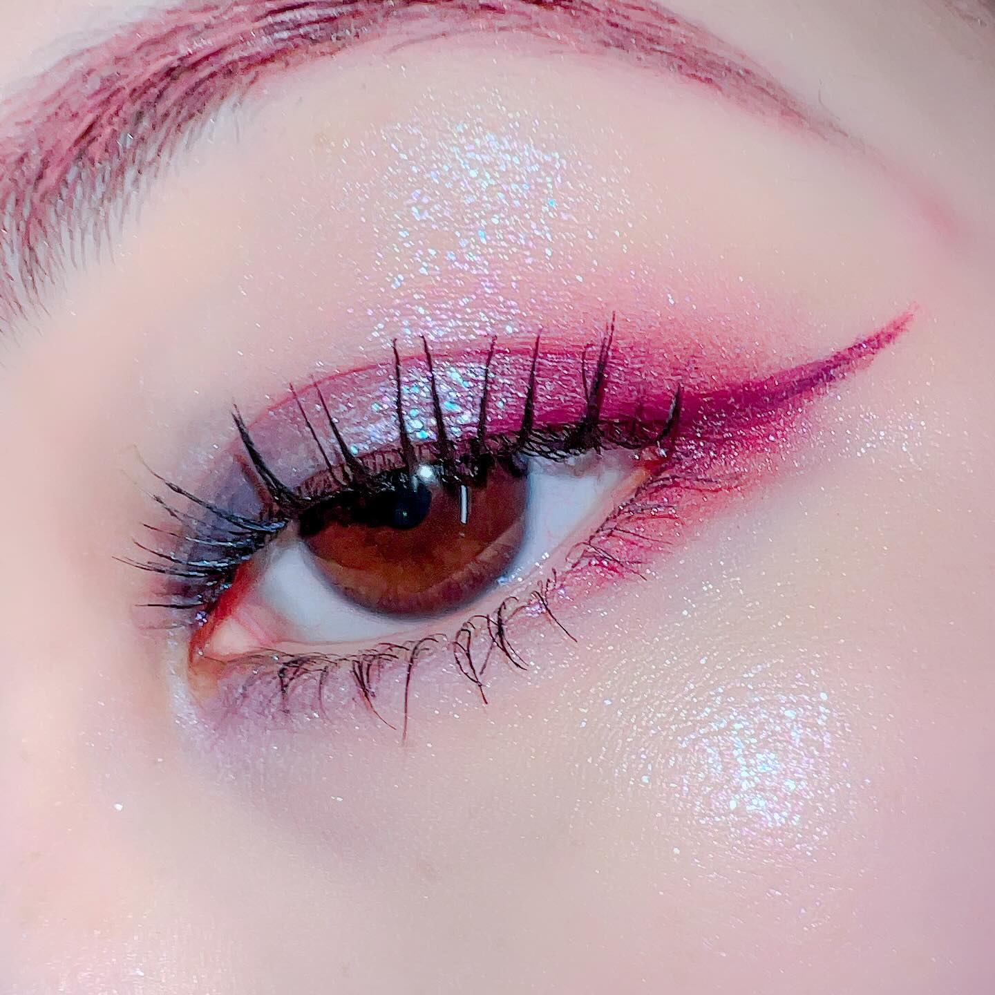 ピンクにグレージュも良いですね👌💗 今日は可愛らしい感じにしてみました💕 上下瞼黒目〜目頭側にラメを塗ってキラキラさせております🤩 目尻はマットのピンクを濃いめに重ねて💗 グレージュのアイライナーと相性◎
