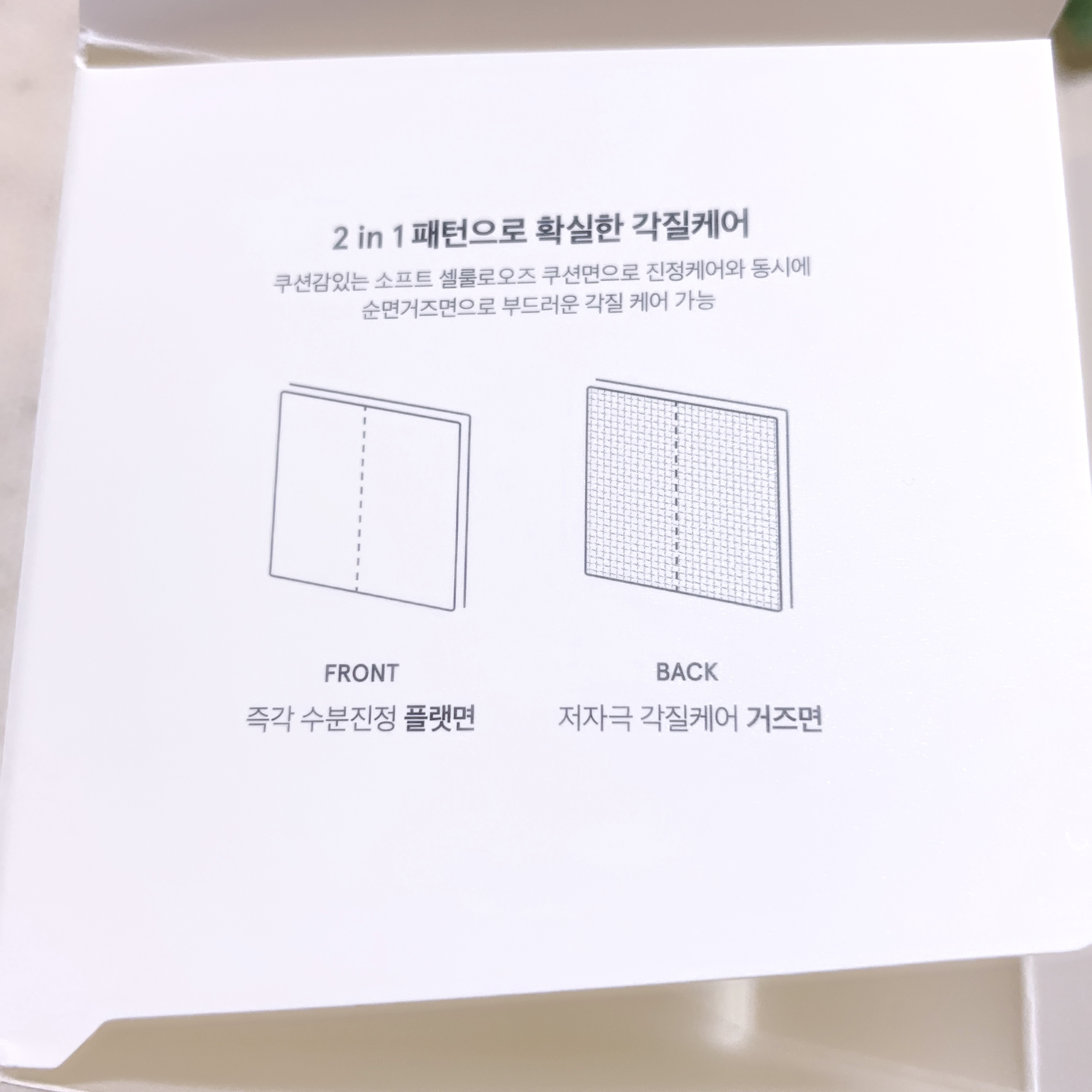 - ツボクサエキス、特許取得済みの原材料配合。 肌の鎮静や角質、くすみを整える、ふき取り化粧水兼パックの2way仕様。 片面は極小のホール構造でふき取り化粧水として角質や肌キメを整えます。 もう片面はクッションの構造になっているため吸水性がよくパックとして使用できます。