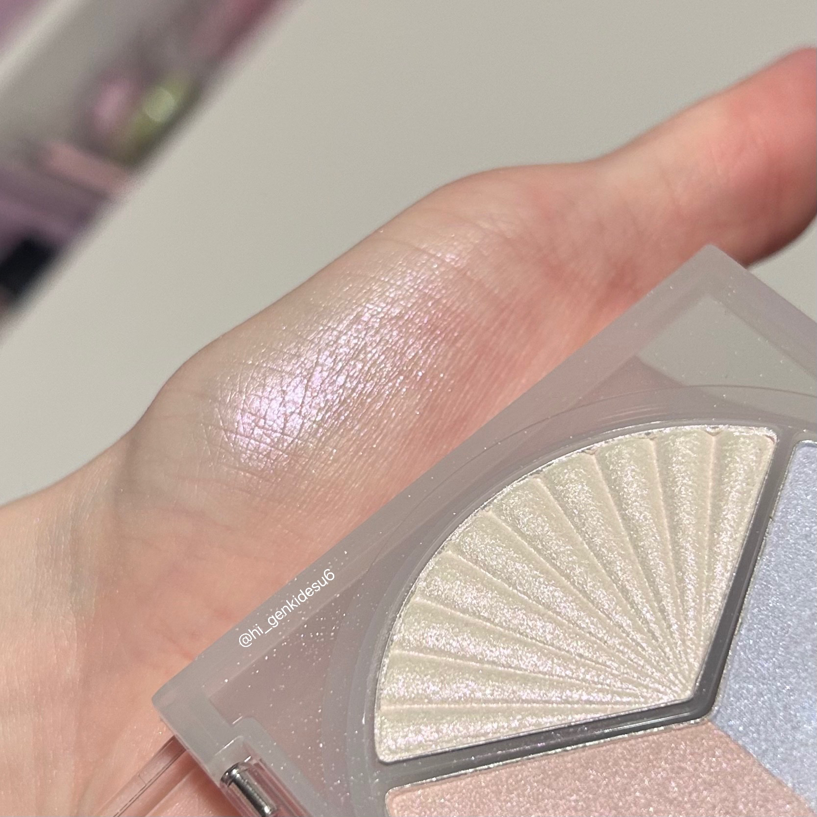流石Glint…粉質が素晴らしい👏これは本当に可愛いです!ほんのりツヤ感のあるピンクベースに多色ラメ✨クリアウィンターにおすすめです🩵 しかもこのチーク、色ごとに粉質が違うんです😮04のチューリップオンは淡いコーラルのツヤ強めベース🌷 他の色も揃えたいなー!