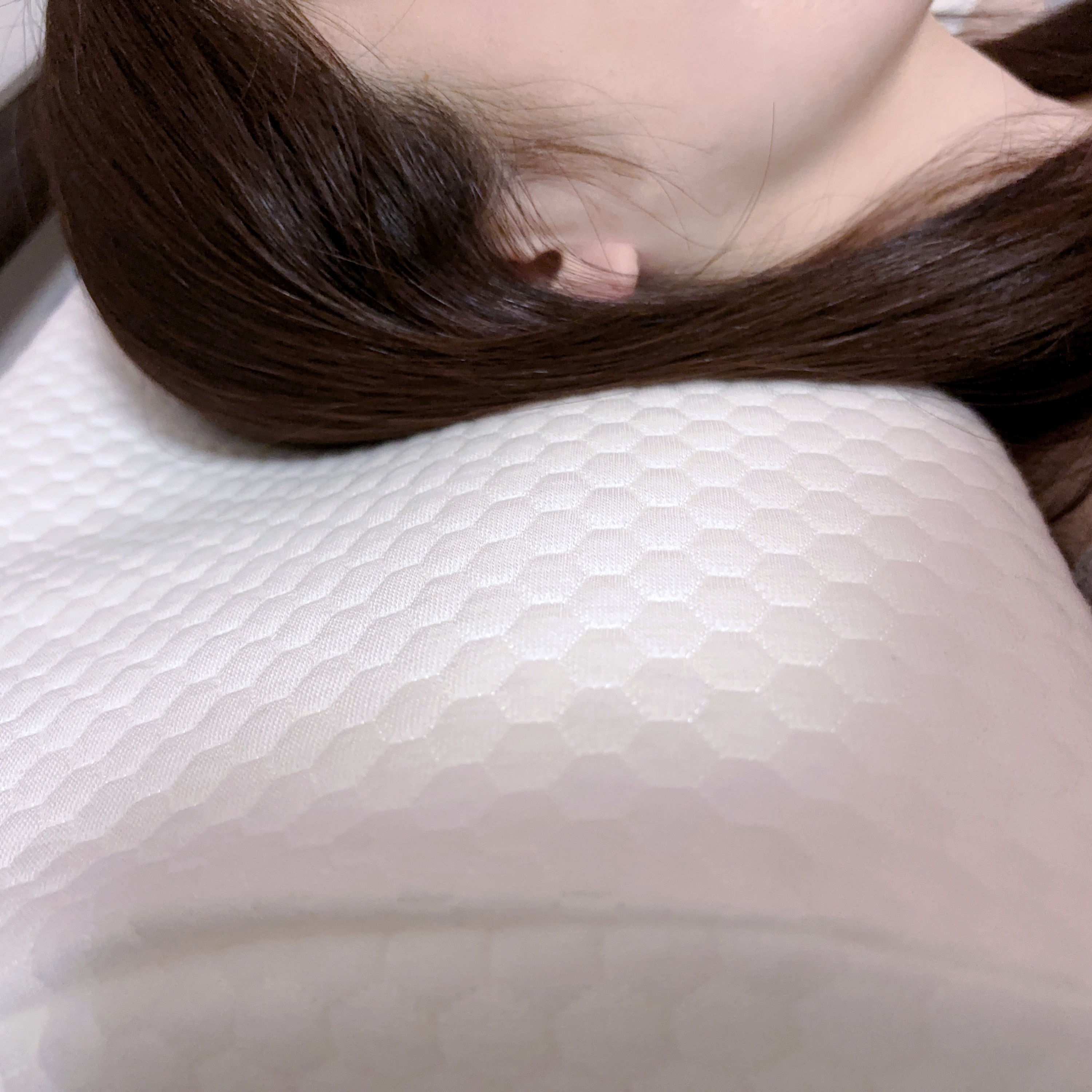 頭をしっかり支えて体圧を分散するので、首や肩の負担を軽減してくれるよ😉 肩や首の負担が気になっていたので、しっかり首にフィットしてくれて肩や首に優しいのは嬉しい☺️ 高級テンセル混生地で光沢があり、滑らかな肌触りで横寝姿勢にも対応!
