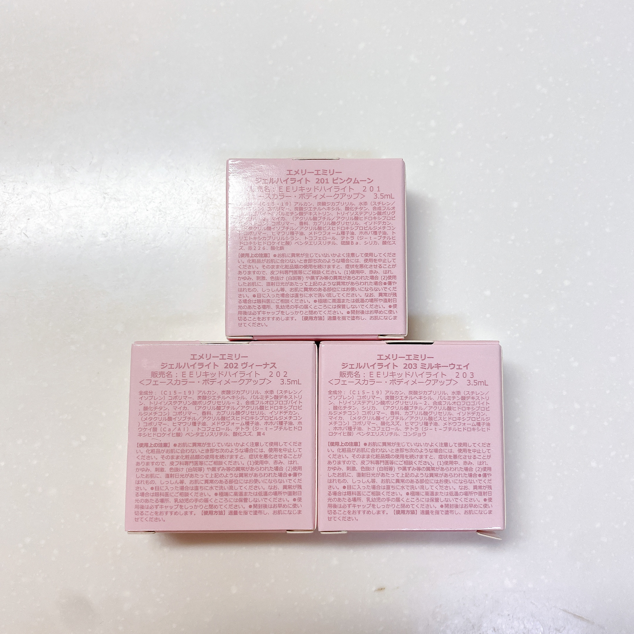 - <201 ピンクムーン> (C15-19)アルカン、炭酸ジカプリリル、水添(スチレン/イソプレン)コポリマー、炭酸ジエチルヘキシル、酸化チタン、合成フルオロフロゴパイト、パルミチン酸デキストリン、トリイソステアリン酸ポリグリセリル-2、マイカ、(アクリル酸ブチル/アクリル酸ヒドロキシプロピルジメチコン)コポリマー、香料、カプリル酸グリセリル、イソドデカン、(メタクリル酸イソブチル/アクリル酸ビスヒドロキシプロピルジメチコン)コポリマー、ヒマワリ種子油、メドウフォーム種子油、ホホバ種子油、トリエトキシカプリリルシラン、トコフェロール、テトラ(ジ-t-ブチルヒドロキシヒドロケイヒ酸)ペンタエリスリチル、硫酸Ba、シリカ、酸化スズ、赤226、酸化鉄 <202 ヴィーナス> (C15-19)アルカン、炭酸ジカプリリル、水添(スチレン/イソプレン)コポリマー、炭酸ジエチルヘキシル、パルミチン酸デキストリン、トリイソステアリン酸ポリグリセリル-2、合成フルオロフロゴパイト、酸化チタン、マイカ、(アクリル酸ブチル/アクリル酸ヒドロキシプロピルジメチコン)コポリマー、香料、カプリル酸グリセリル、イソドデカン、(メタクリル酸イソブチル/アクリル酸ビスヒドロキシプロピルジメチコン)コポリマー、ヒマワリ種子油、メドウフォーム種子油、ホホバ種子油、ホウケイ酸(Ca/Al)、トコフェロール、テトラ(ジ-t-ブチルヒドロキシヒドロケイヒ酸)ペンタエリスリチル、酸化スズ、黄4 <203 ミルキーウェイ> (C15-19)アルカン、炭酸ジカプリリル、水添(スチレン/イソプレン)コポリマー、炭酸ジエチルヘキシル、パルミチン酸デキストリン、トリイソステアリン酸ポリグリセリル-2、合成フルオロフロゴパイト、酸化チタン、シリカ、(アクリル酸ブチル/アクリル酸ヒドロキシプロピルジメチコン)コポリマー、香料、カプリル酸グリセリル、イソドデカン、マイカ、(メタクリル酸イソブチル/アクリル酸ビスヒドロキシプロピルジメチコン)コポリマー、酸化スズ、ヒマワリ種子油、メドウフォーム種子油、ホホバ種子油、トコフェロール、テトラ(ジ-t-ブチルヒドロキシヒドロケイヒ酸)ペンタエリスリチル、コンジョウ