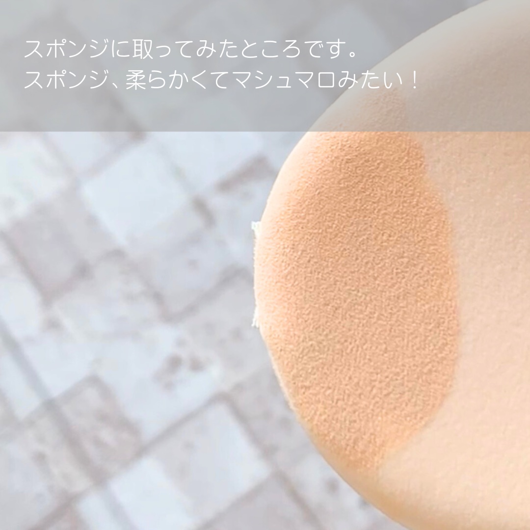コンパクト開けるまでもなく、パッケージからミラー加工 外出先でちょっとだけ咄嗟に鏡をチェックしたくなった時とか、大助かりなコンパクトです。 ブラー加工したようなきめ細かくなめらかで、毛穴の目立たない、つるり肌へと導くブラーカバークッションファンデーションとなります♡ 使い心地はしっとりとしたテクスチャーに感じました。 厚塗り感もなく、むしろナチュラルな仕上がりとなっていて、ふわっと薄付きな仕上がりがお気に入りになりました。