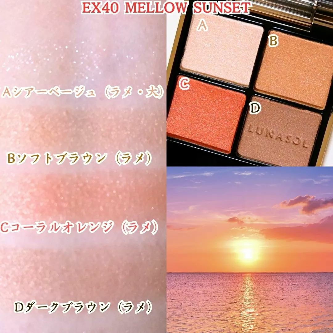 穏やかな光に満たされた夏の海辺を、まなざしに映して。 神秘的に揺らめくシェルイリディセンス まとまりのある紫系カラーが入っている優しい色合いのモーヴパレットです。 透明感のある清楚な印象に。 美しいサンセットを演出。 彩度の異なった2つのブラウンカラーと穏やかなコーラルオレンジカラーで Aをハイライトの欲しい目頭や黒目の上や涙袋に