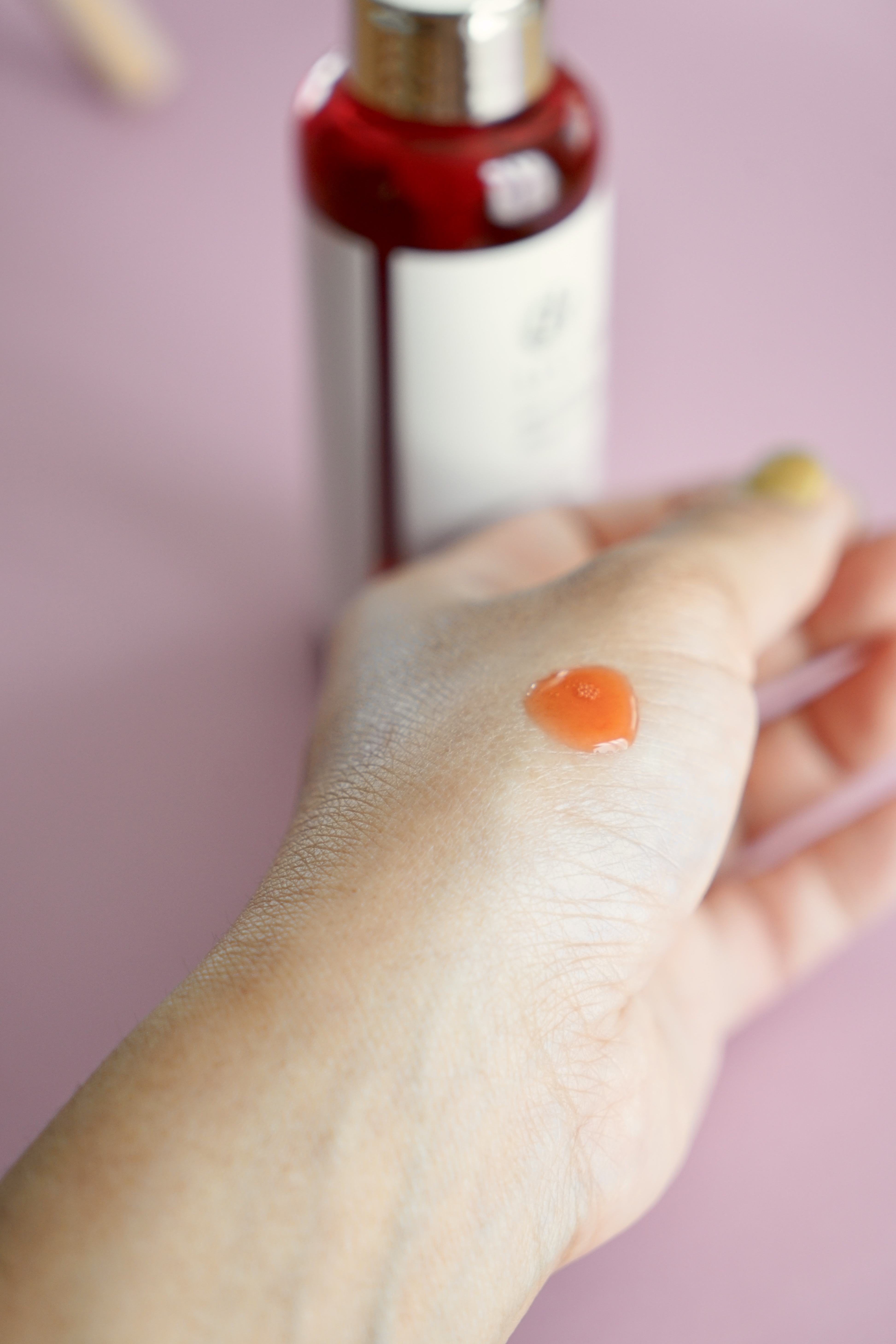 レチノールで洗う新世代のリキッド状クレンジング 【 LIALUSTER レチノールディープクレンザー 】 クレンジングは見た目も珍しい赤色 アスタキサンチンやトマト果実エキスなどの美肌菌由来成分を赤いカプセルに閉じ込めたためなんだって 洗い上がりは、しっとり、ツルッとした使用感です エタノール、シリコン、タルク、合成香料、紫外線吸収剤と5つの無添加も嬉しい