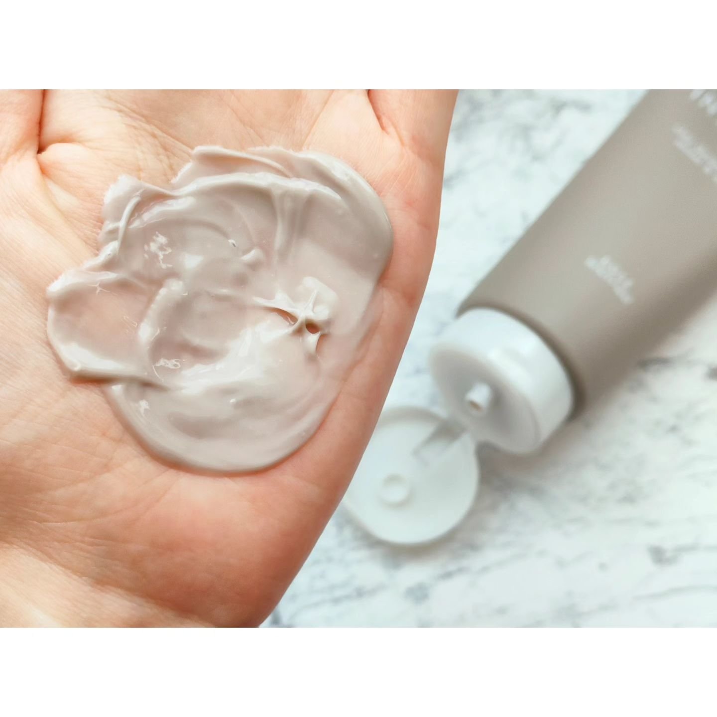 実際に手に取ってみると、グレーの洗顔フォームです😌 泡立ちがとても良くて、泡立てネットを使うとすぐにたっぷりの泡ができました! きめ細かくてクリーミーな泡質でお肌にのせるともっちり吸着🎵 ヘタレにくいもちもち弾力泡に包まれて気持ち良く洗えました💛 香りは、フローラルブーケとラベンダーを合わせた清潔感のある「リラックスハーブの香り」。 ヌルつき感もなく、洗い流しもらくちんです! しっとりとした使用感とさっぱりした洗い上がりが◎ 価格が手ごろでこの泡質、とても良いなと思います👍 ぜひリピしたい洗顔フォームです✨