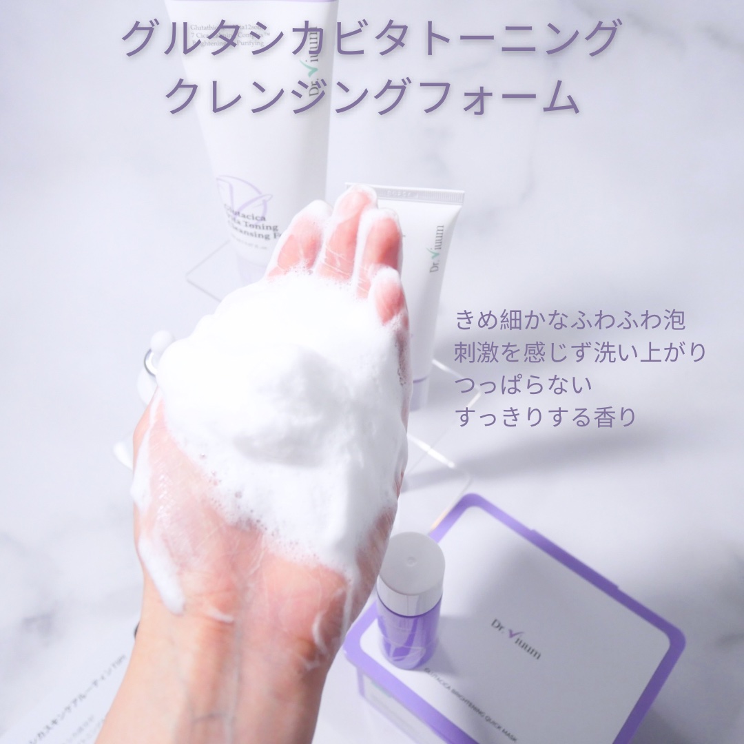 5日シミクリームと呼ばれているクリーム😳✨ ベタつかずに、伸びは良くて、しっとりとした塗り心地🌱 透明感&鎮静成分を配合したビタミンたっぷりの洗顔フォーム🫧 泡立ちも良くて、かためでもふもふのきめ細かい泡が心地よい〜☺️ 日焼け止めで使い心地軽いのに美容成分がたっぷり配合されていて嬉しい☀️ お花のような甘い香りがほんとのとします🌸