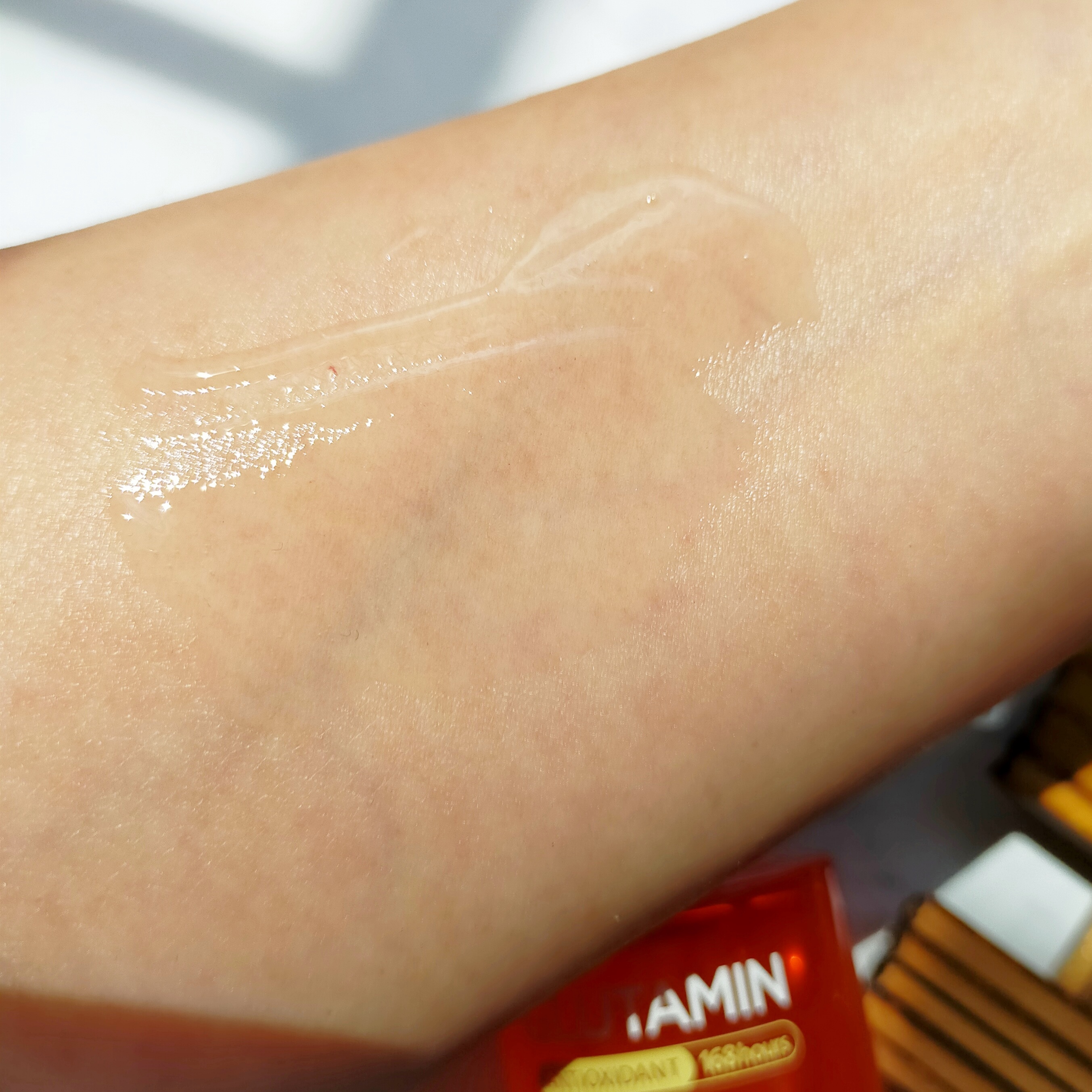 - グルタチオンとビタミン5種を整肌成分として配合、潤いとツヤを与え肌の角質層から弾力ケアして透明感のある肌へと導き、乾燥くすみもケア