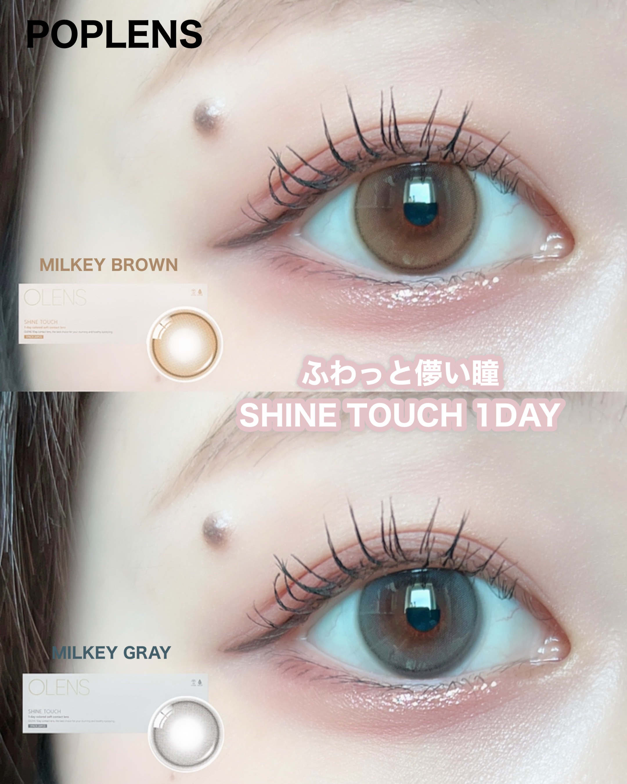 - ■OLENS ShineTouch(オーレンズシャインタッチ) 韓国カラコン業界の人気ブランド『OLENS(オーレンズ)』の日本正式承認商品シリーズ。ふんわりミルキーなカラーとほんのりした細フチとベースカラーの奥側にサークルラインを配置されたデザイン。“柔らかくてミルキーなカラー感”のあるナチュラルな瞳を表現。世界中から注目を浴びるグループ「NewJeans (ニュージーンズ)」がイメージモデル。流行、季節に問わずデイリーで着用できるカラコン「シャインタッチ」シリーズがついに日本で新発売!本来の瞳と馴染みやすいのでデイリーで着用しやすいシリーズです。 発売開始日:2024年4月19日 モアコンタクトで発売 ■使い方 コンタクトレンズは高度管理医療機器です。必ず眼科医の処方に従って購入してください。 ■使用上の留意事項 コンタクトレンズは高度管理医療機器です。眼科医の指導に従い装用期間を厳守し、正しくお使いください。眼の定期検査を必ず受けてください。添付文書を必ず読み、取扱方法、装用時間を守って正しくお使いください。少しでも異常を感じたら、直ちに眼科医の検査を受けてください。