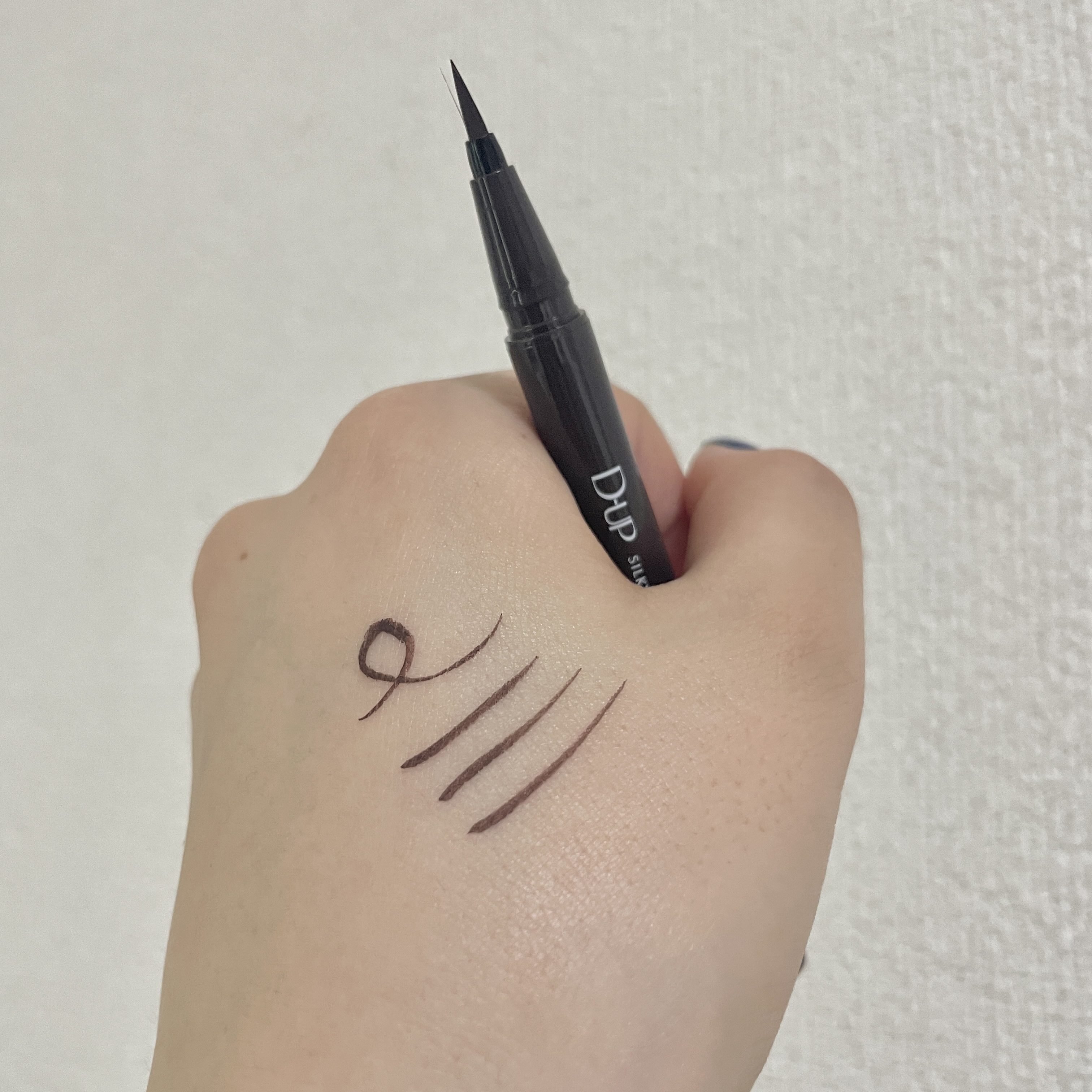 ナチュラルに盛れるアイラインの引き方。全体にアイラインを引くより、目尻だけの方が二重幅も広く見えるしナチュラルなのにしっかり盛れる気がします👀 個人的には少し抜け感のあるダークフィグというカラーが1番お気に入りです! D-UPのアイライナーはカラーも豊富で落ちにくいのでだいすきです!!