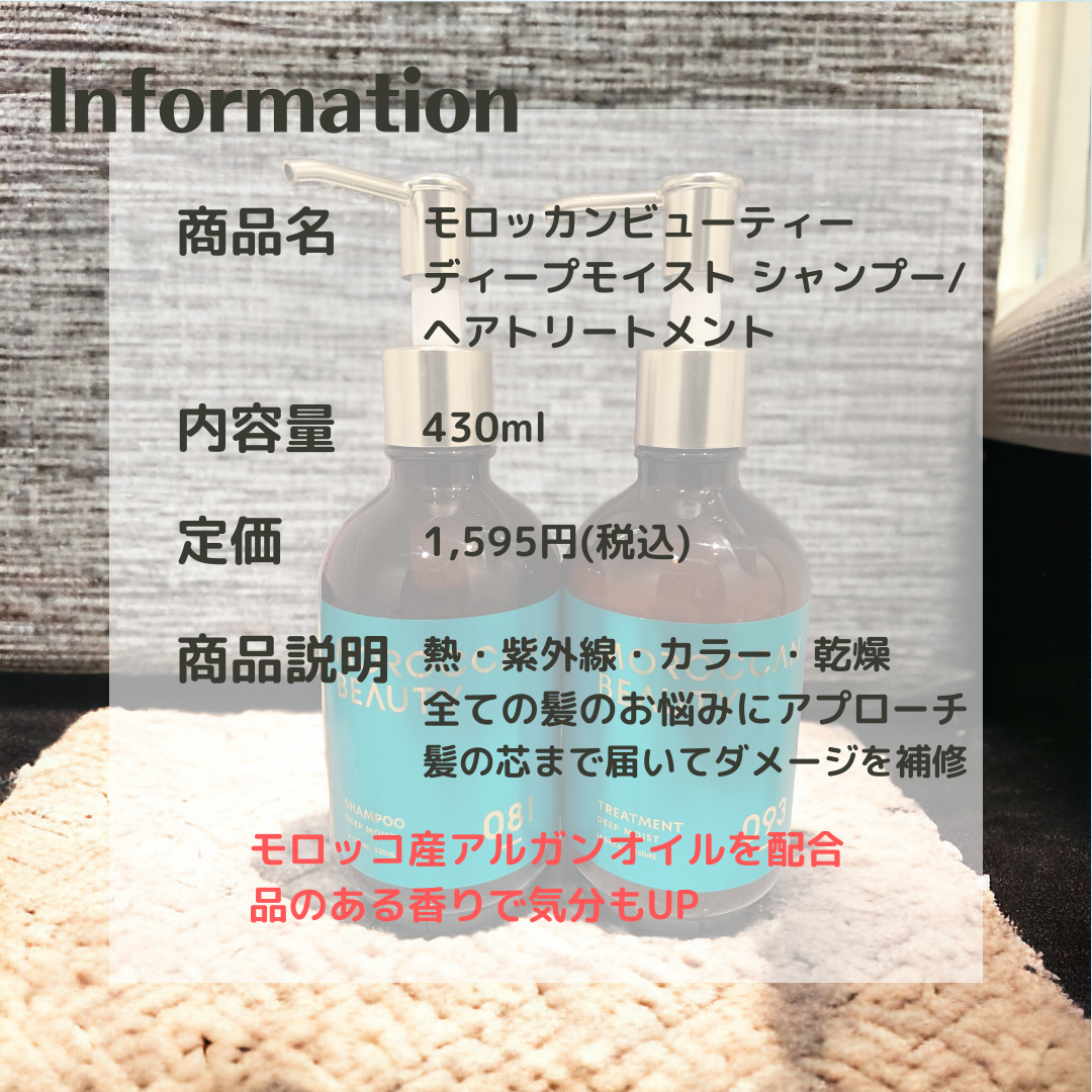 商品詳細情報モロッカンビューティ ディープモイスト シャンプー/ ヘアトリートメント