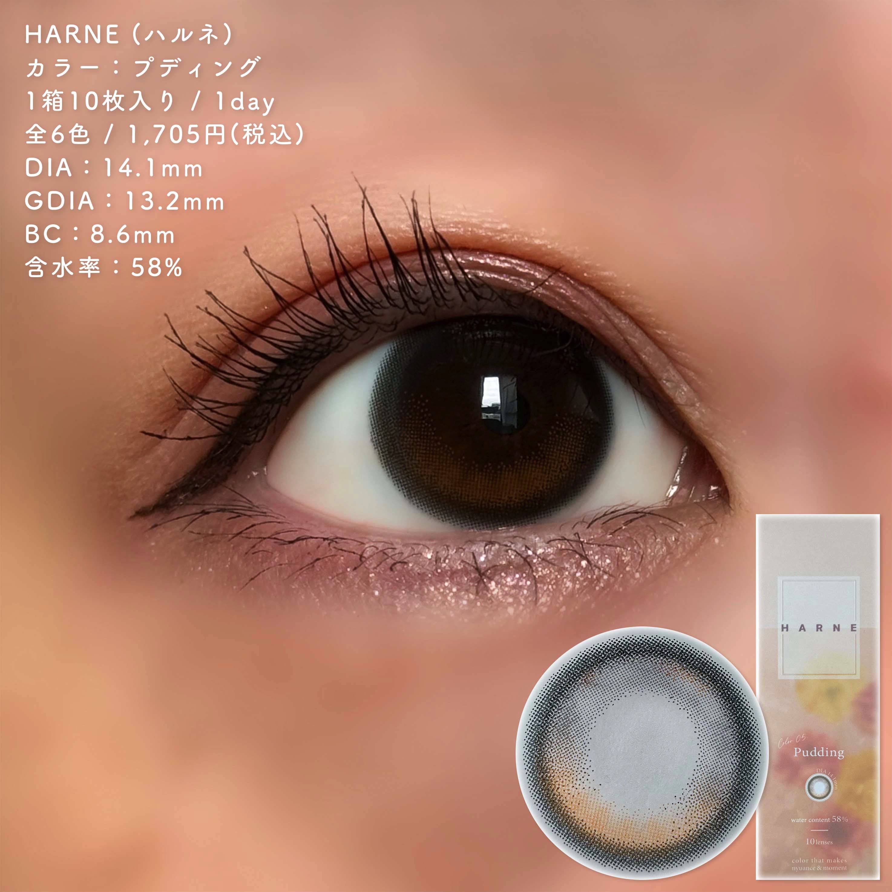 HARNE˚✦みずみずしい透明感うるツヤ水光レンズ🫧✧Pudding#プディング¥1,705[リリーアンナ公式価格]うるちゅるブラウン×ツヤっぽハイライト瞳に光が差し込んで吸い込まれるような瞳に[DIA14.1|G.DIA13.2|B.C8....