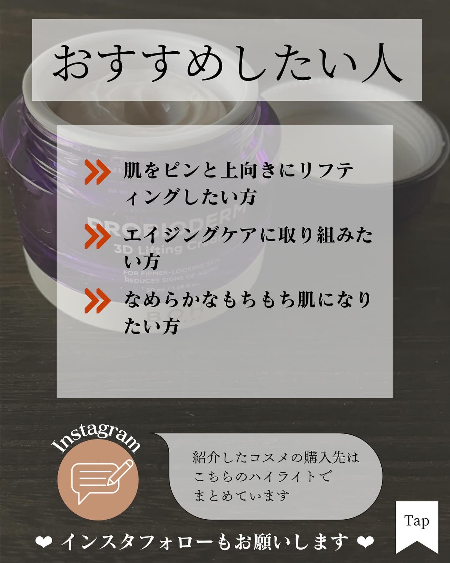 ハリ活乳酸菌が新配合。紫のパッケージ。3DタンタンクリームとSNSで話題のバイオヒールボ プロバイオダーム&3Dリフティングクリーム。 このプロバイオダームは、66.6倍の競争を勝ち抜いて生き残った3つの乳酸菌株をブレンド!肌にハリと弾力を与える効果が期待でき、弾むような健康的な素肌へと導いてくれるんだそう。 濃密でもっちりとしたテクスチャーで肌表面がピンと張って、リフトアップしている気がします。