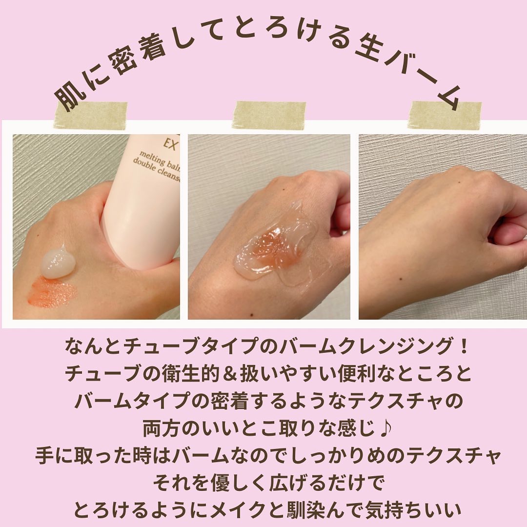 | バームを肌に乗せて撫でるとすぐに オイルみたいにみずみずしく変化✨ | 詳細を見る | ||