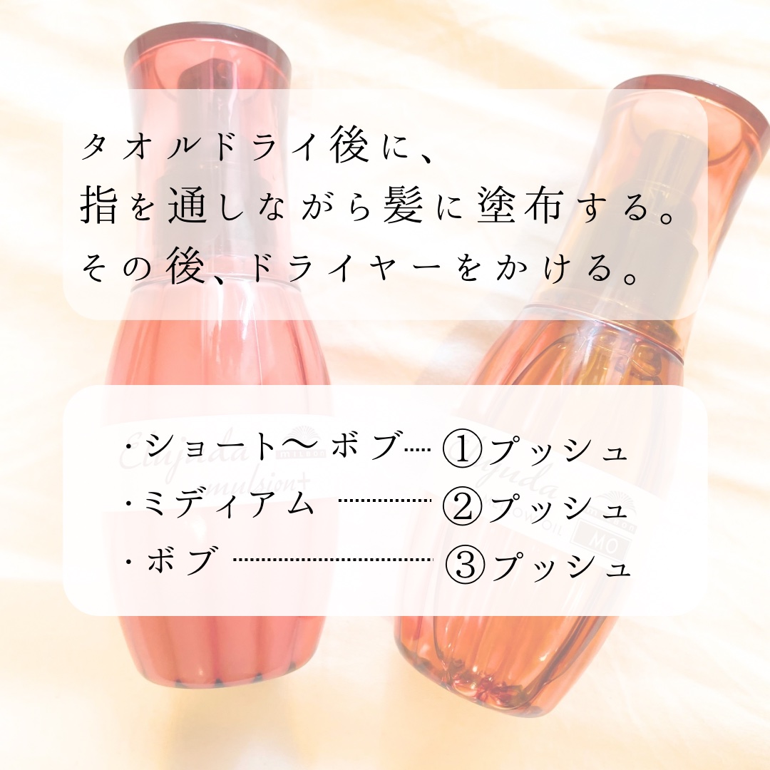 エルジューダ エマルジョン+のほうが甘い香りです♡ 香りの持続性は長くないです🥺 ミルクなので髪に馴染みやすく オイルよりも髪にすぐ浸透するイメージ♡ ドライヤー前にヘアミルクを塗り 軽くドライヤーで乾かしてから次にヘアオイルを塗ってドライヤーで仕上げます✨