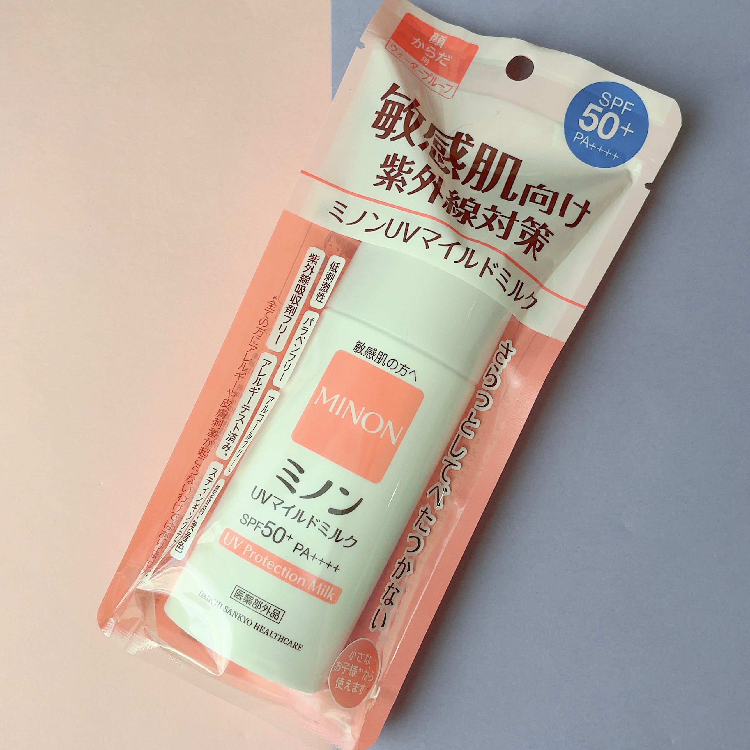 - <ミノンUVマイルドミルク> グリチルリチン酸2K、デカメチルシクロペンタシロキサン、低温焼成酸化亜鉛、パルミチン酸2-エチルヘキシル、微粒子酸化チタン、1,3-ブチレングリコール、メチルシロキサン網状重合体、リンゴ酸ジイソステアリル、グリセリルグルコシド液、メチルポリシロキサン、ポリヒドロキシステアリン酸、オクテニルコハク酸トウモロコシデンプンエステルアルミニウム、ポリオキシエチレン・メチルポリシロキサン共重合体、メチルハイドロジェンポリシロキサン、セスキイソステアリン酸ソルビタン、水酸化アルミニウム、架橋型メチルポリシロキサン、ラウロイルグルタミン酸ジ(コレステリル・ベヘニル・オクチルドデシル)、フェノキシエタノール、セスキオレイン酸ソルビタン、含水ケイ酸、グリコーゲン、コレステロール