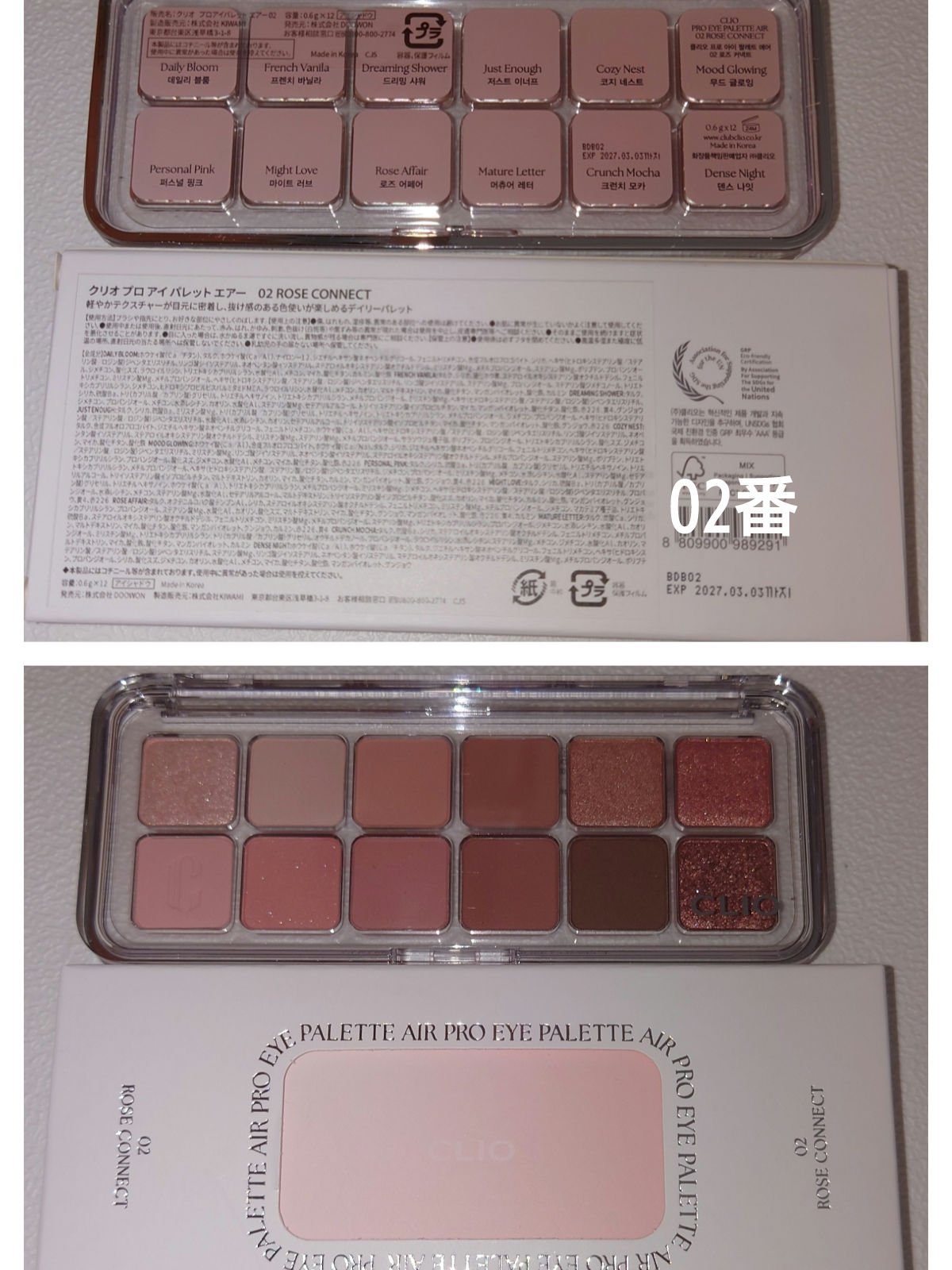 見た目も仕上がりも全部かわいい!CLIOプロアイパレットエアー新しく登場したCLIOのアイシャドウパレット🎨全12色のうちの#02ローズコネクト#03ミュートライブラリーの2色をゲット!クリオと言ったらのプロアイパレットと大きく違う点は「12...