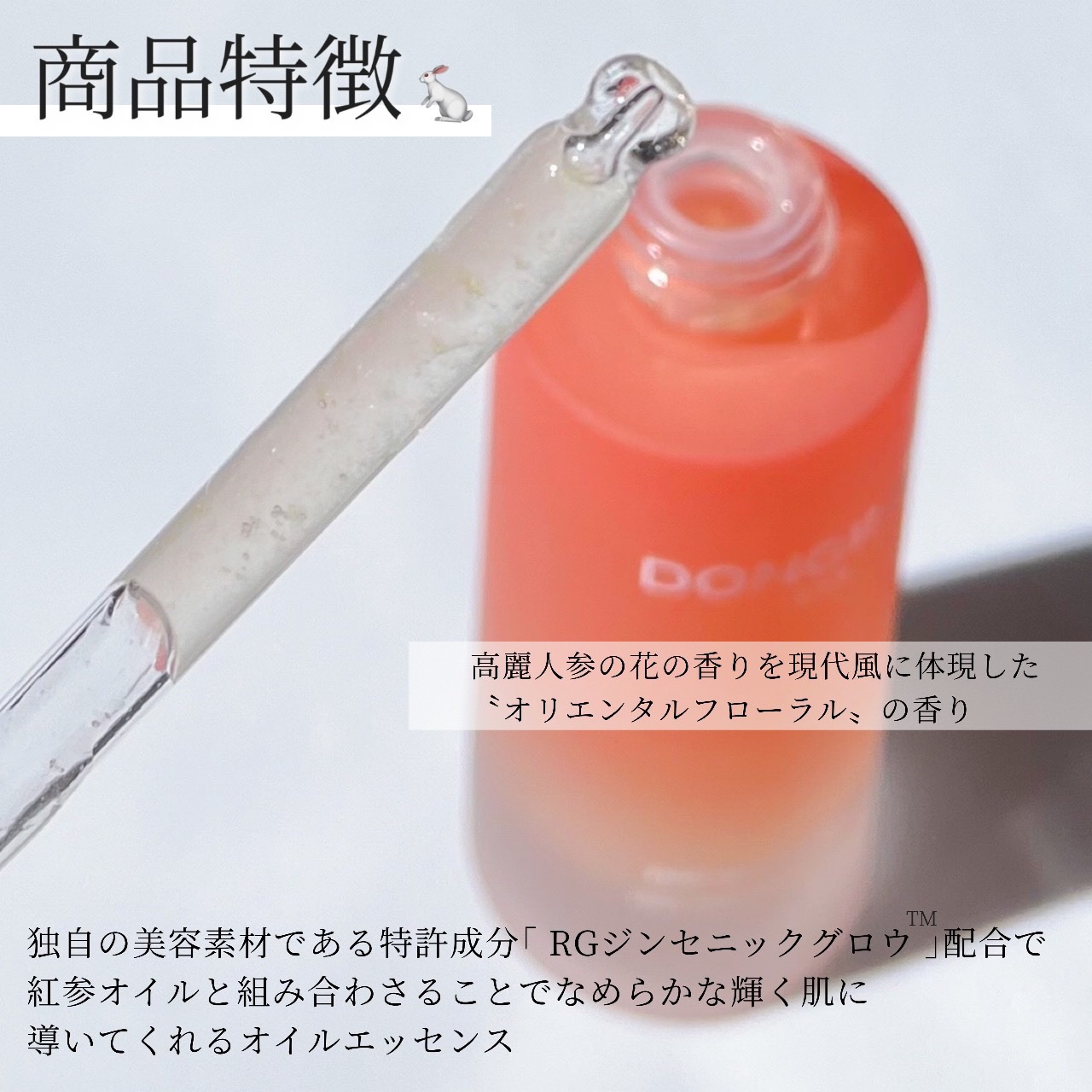 みずみずしいテクスチャーのオイルエッセンスなので、オイル特有のベタつきが少なく、けれどもオイルならではのしっとり保湿感のある美容液🥕🤍 高麗人参の美容液なので漢方系の香り?と思いきや、オリエンタルフローラルの癒される香りで、スキンケアの気分も上がります😭🤍 肌に元気がないな〜って時の栄養チャージに使いたい美容液でした🥕