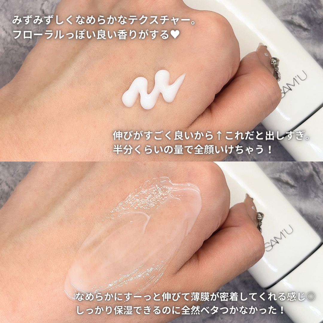 | とろみのあるテクスチャーなのに、すーっと肌に馴染んでくれます。メイク前にも使いやすいです | 詳細を見る | ||