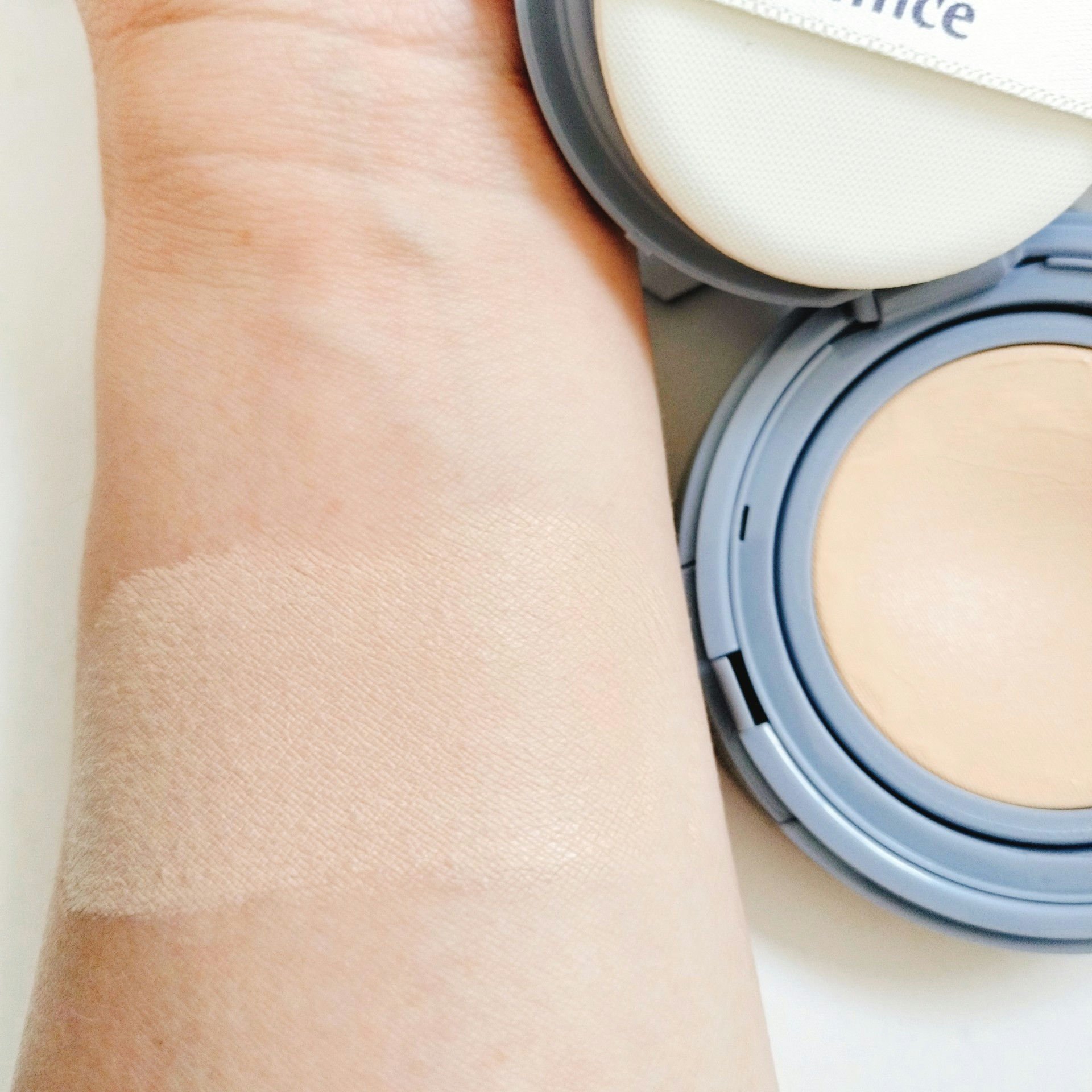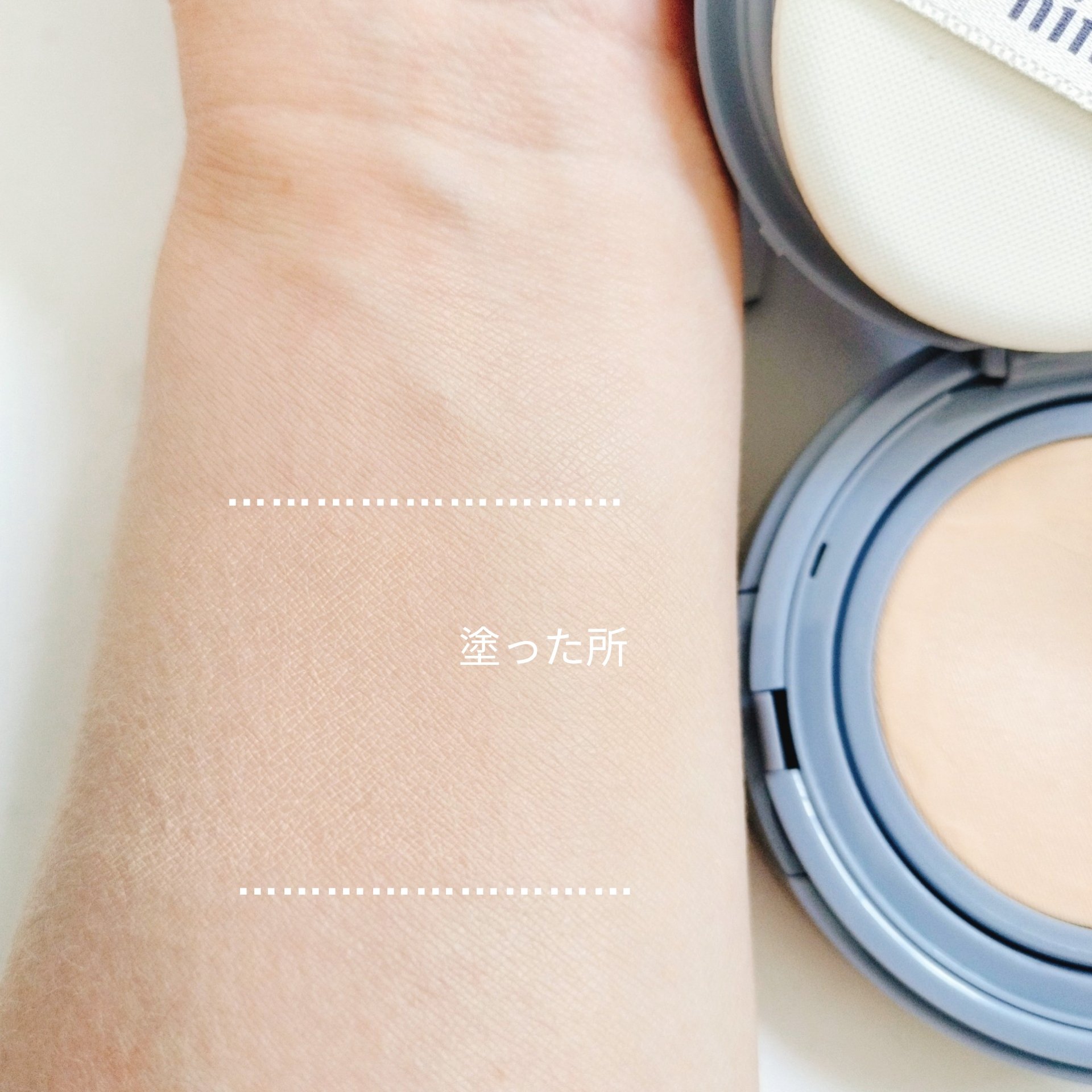 マットな質感のクッションファンデーション🩵 付けた時はやや艶感があったけど、時間が経つとマットに✨ パフに多めに取っても、メッシュクッションだから厚塗りにならないし、肌への密着感もありヨレにくい🫧 パウダーをのせなくても肌がサラッとするのに乾燥しない点も時短になって良かったよ♡