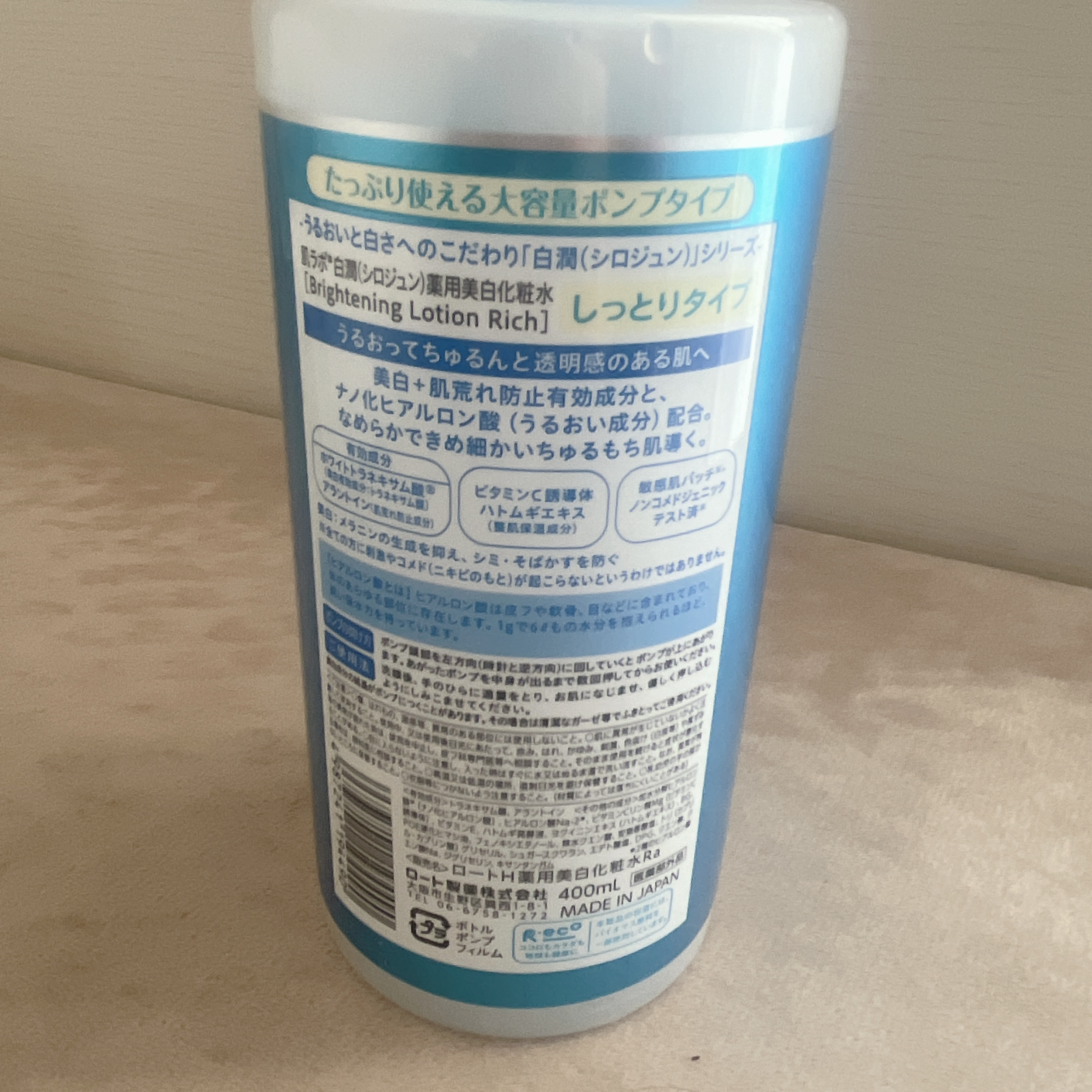 - <ボトル 170ml> 有効成分 トラネキサム酸、アラントイン その他の成分 加水分解ヒアルロン酸(ナノ化ヒアルロン酸)、ヒアルロン酸Na-2、ビタミンCリン酸Mg (ビタミンC誘導体)、ビタミンE、ハトムギ発酵液、ヨクイニンエキス(ハトムギエキス)、BG、POE硬化ヒマシ油、フェノキシエタノール、無水クエン酸、安息香酸塩、トリ(カプリル・カプリン酸) グリセリル、シュガースクワラン、エデト酸塩、DPG、クエン酸、クエン酸Na <つめかえ用 170ml> 有効成分 トラネキサム酸、アラントイン その他の成分 加水分解ヒアルロン酸(ナノ化ヒアルロン酸)、ヒアルロン酸Na-2、ビタミンCリン酸Mg (ビタミンC誘導体)、ビタミンE、ハトムギ発酵液、ヨクイニンエキス(ハトムギエキス)、BG、POE硬化ヒマシ油、フェノキシエタノール、無水クエン酸、安息香酸塩、トリ(カプリル・カプリン酸) グリセリル、シュガースクワラン、エデト酸塩、DPG、クエン酸、クエン酸Na <大容量ポンプ 400ml> 有効成分 トラネキサム酸、アラントイン その他の成分 加水分解ヒアルロン酸(ナノ化ヒアルロン酸)、ヒアルロン酸Na-2、ビタミンCリン酸Mg (ビタミンC誘導体)、ビタミンE、ハトムギ発酵液、ヨクイニンエキス(ハトムギエキス)、BG、POE硬化ヒマシ油、フェノキシエタノール、無水クエン酸、安息香酸塩、トリ(カプリル・カプリン酸) グリセリル、シュガースクワラン、エデト酸塩、DPG、クエン酸、クエン酸Na