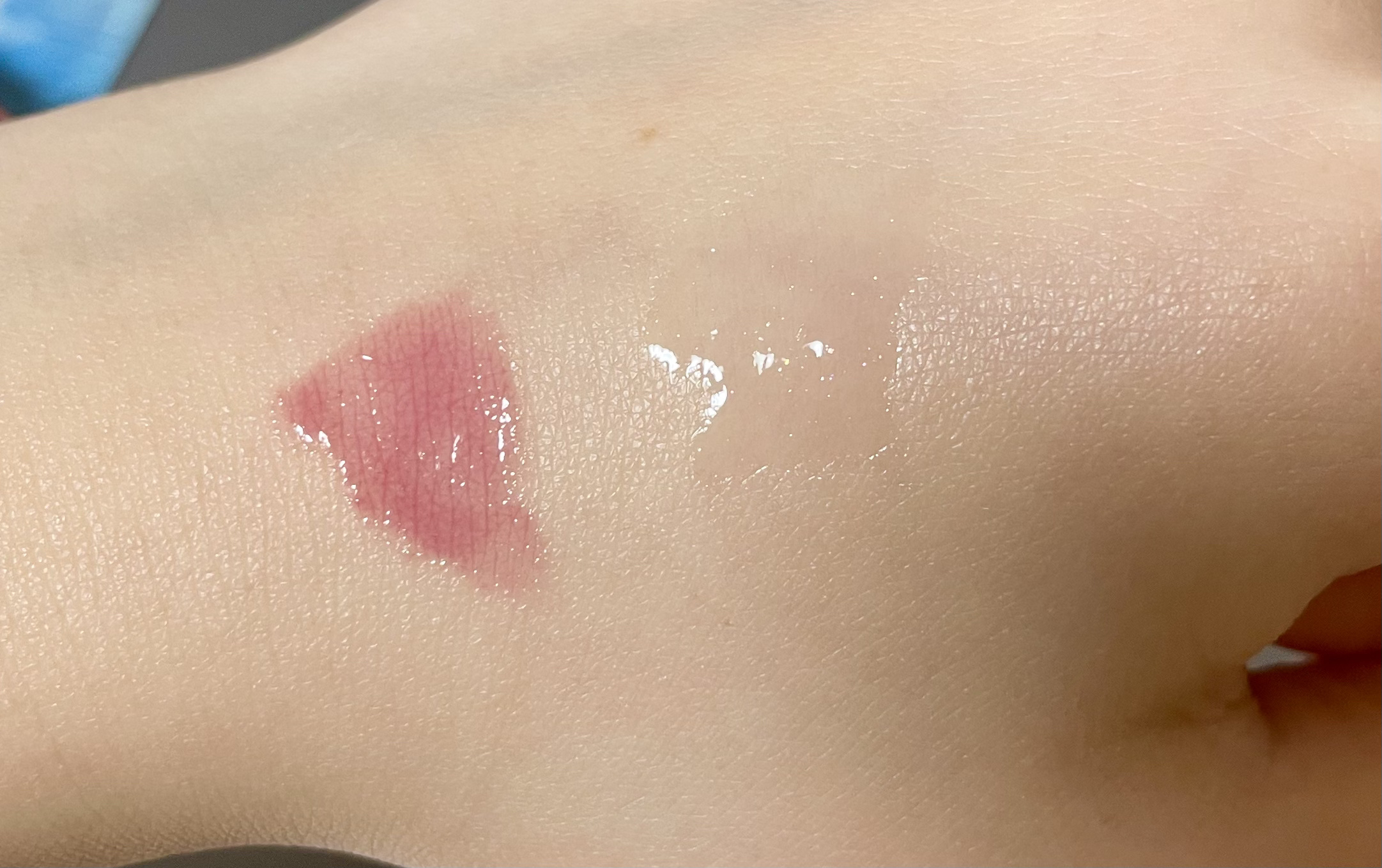 透明感のある輝きとラメで塗った瞬間儚げな美女になれます! これ使うと唇がふっくらして乾燥しないんです🥰 ブルベ大歓喜カラーでほんのりくすみが入ってていい女になれちゃう…♡ ただリップを塗っている時に唇同士ですり合わせるとどうしても量が多くなるのか上下でグロスが糸引いてて…笑