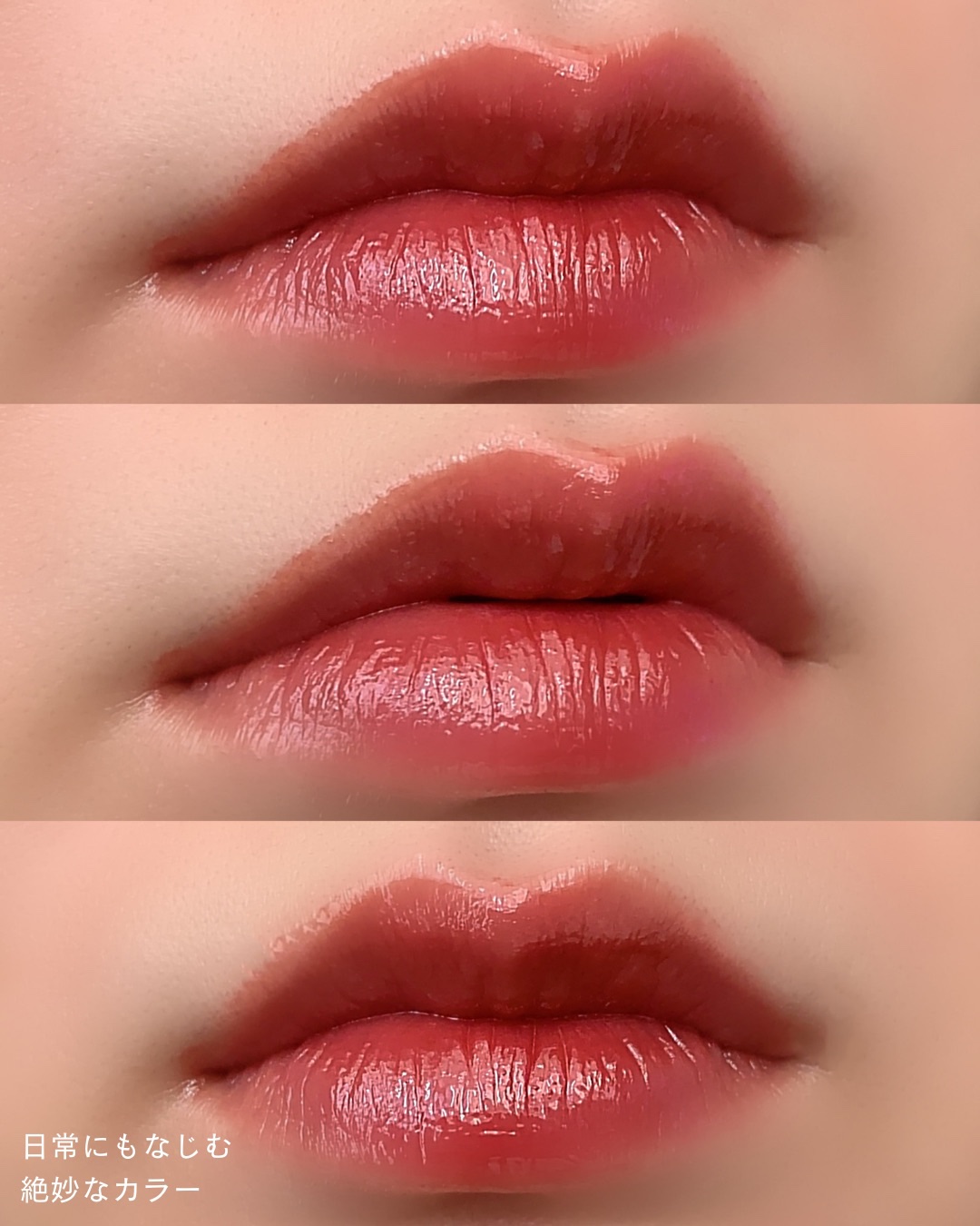 - 生まれつきの唇の色ようにナチュラルなゼリーカラー、 ぷるぷるとした弾性が感じられる透明オイルの輝き。 柔らかい明度と彩度で誕生したナチュラルトーンのヌードカラーは、 本来の唇の色と自然に調和し、 いきいきとした印象を完成させます。 ティントほどの色持ちの良さで、こだわりのカラー持続力を持ちます。 まるで自分の唇の色のようにしなやかに発色し、 柔らかい印象を与えてくれます。