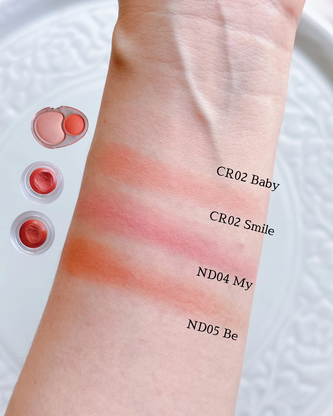 コロンとした丸みのある可愛らしいデザイン。ふんわりとしたムースプリンのようなクリーム質感のリップアンドチーク。肌に馴染ませるとサラッとしているマットな使用感です。 ND01 OH!は、くすみ感のないフレッシュな青みピンクカラー。好みの濃さに、またパウダーチークと重ねることも出来るのでイエベでも可愛らしい青みピンクカラーに挑戦しやすかったです。 値段も手頃で色展開も豊富なので、コーラル系やピーチ系のカラーも集めたくなりました。