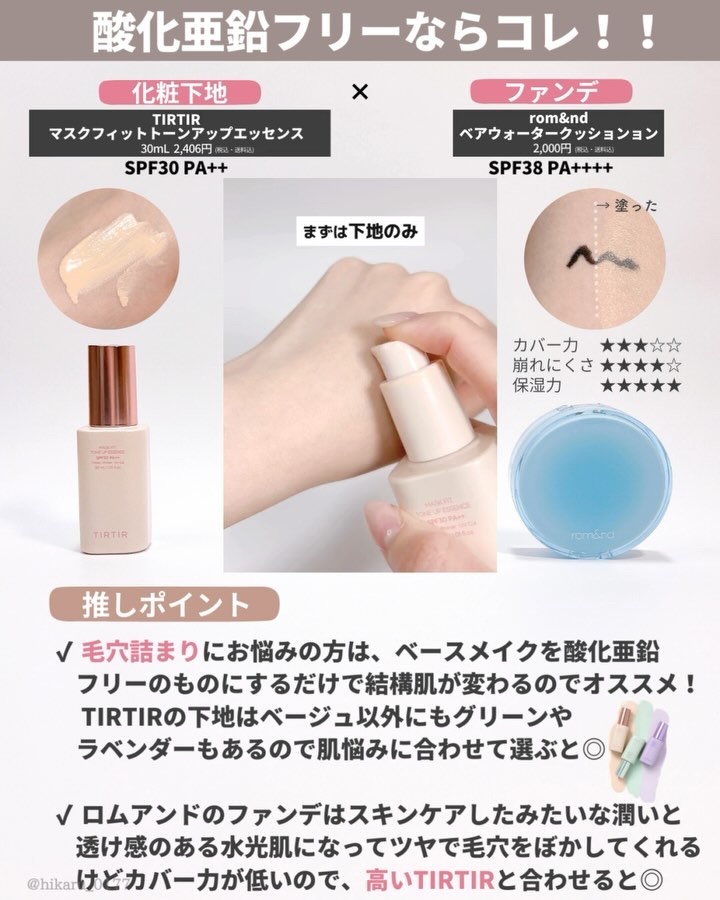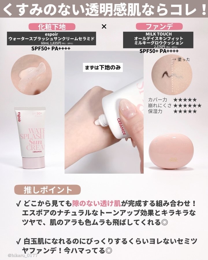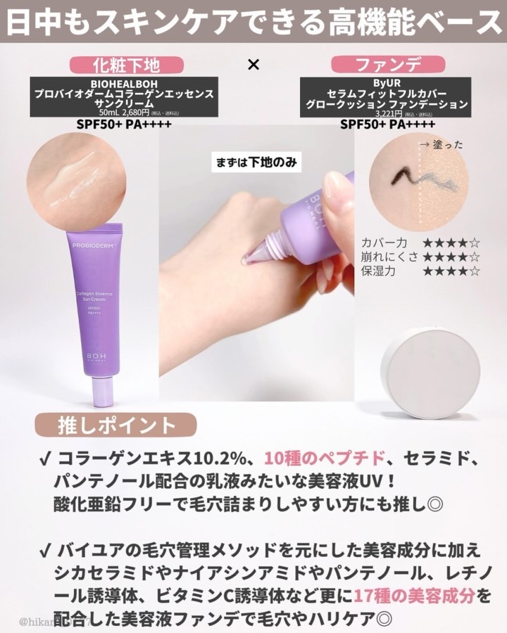 この中でも、ご相談いただいた時にまずオススメするのがジョンセンムル🙌 カラーや肌質など、ご自身にあったものを選べるのですが、私はトーンアップを使ってます💕 全体的なバランスが良いので、ひかるの中でも使用頻度が高いアイテムです💪✨ パパパッとメイクを済ませたいときや、ノーファンデな日にはナンバーズイン😍 これあると便利ですよ〜💓 商品名の通り、陶器肌に仕上がるし、マスクに本当に付きにくい✨ 保湿力やツヤ感、テクスチャーやカバー力など、それぞれ星や画像を参考に比較して、お買い物の参考に少しでもなれば嬉しいです🙌💕