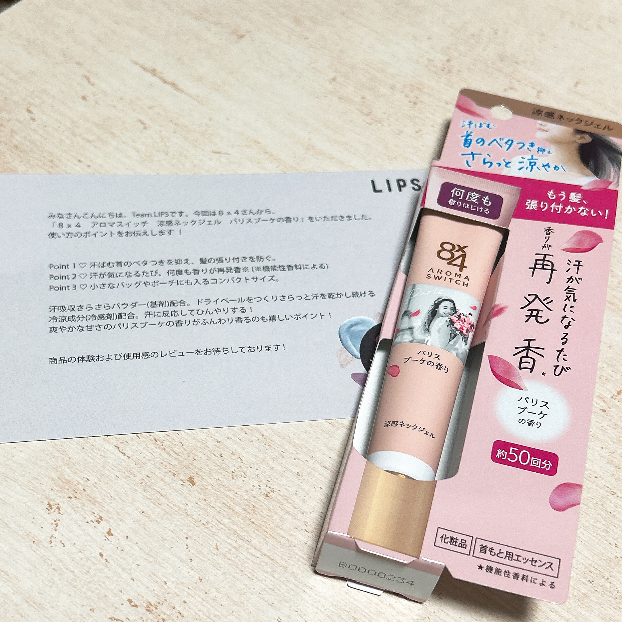 8x4からいただきました。これから暑くなり、汗のべたつき、髪の毛の張り付きが気になる季節にオススメ☀️8×4アロマスイッチ 涼感ネックジェル パリスブーケの香り《特徴》✴︎首のベタつきを抑え、髪の張り付きを防いでくれる✴︎汗が気になるたびに、...