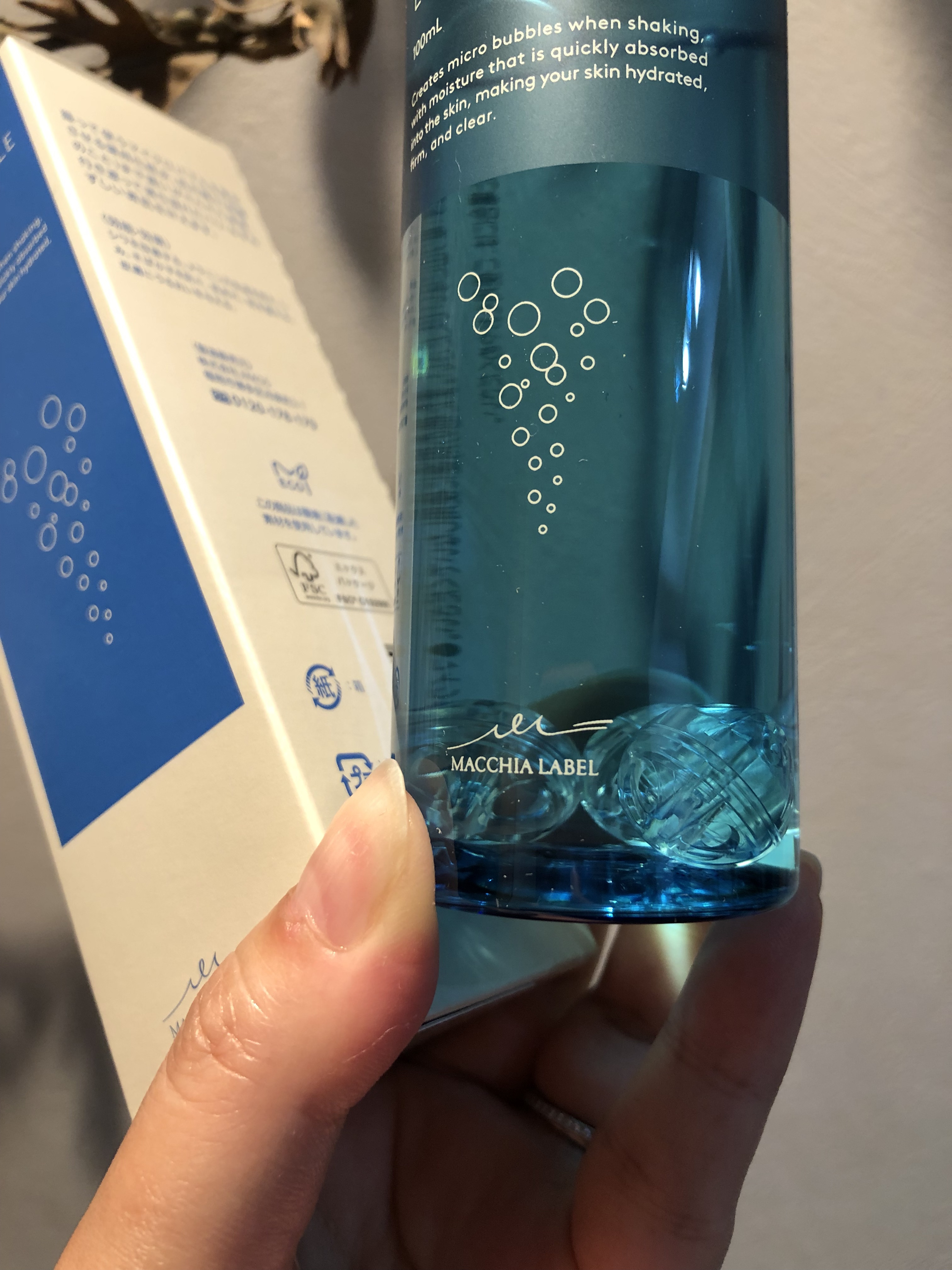 こちらの振ってファインバブルを発生させる日本初の化粧水。中にボールが入ってるのですが、振るとこのボールが微細な泡を発生させるみたいです。 少しとろみのあるテクスチャですがさらっと馴染みがよくて使い心地がいいです◎ 細かな泡とブルーのボトルで見た目も綺麗なところもお気に入りです◎