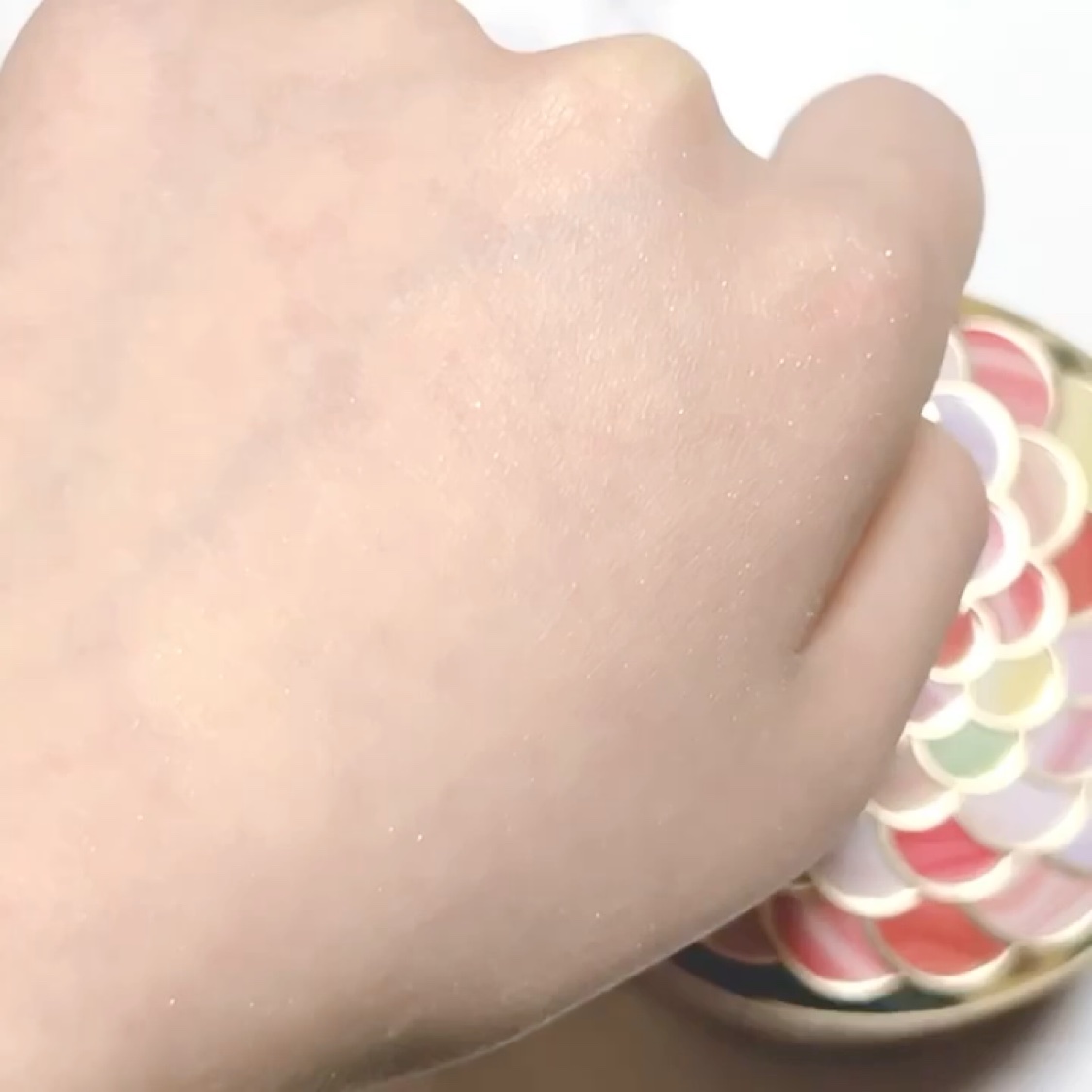 もう、全てが美しいです!! 蓋の裏にゲランのシンボルであるハチの刻印も🐝 えっ!?😳と思わず声が出るほどキラッキラのラメが……!!まるで内側から滲み出るツヤ肌のようで、本当に綺麗!