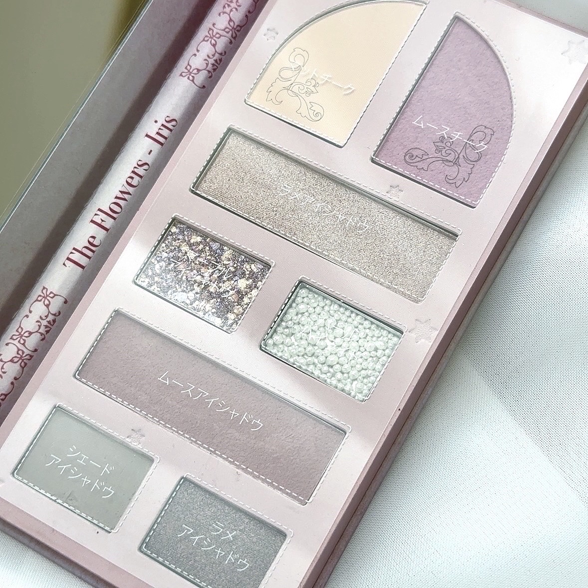 圧倒的に美しいパケ あのアルフォンス・ミュシャの絵画がパケにあしらわれ、しかも輝くような加工がされていてメイクに使うたびに心が躍る💓 ただのアイシャドウというわけじゃなくてマルチパレットなのもポイント高い🔥 これ一つで☑️アイシャドウ☑️チーク☑️シェーディング☑️ハイライトの4役をこなしてくれるから、旅行はこれ一つ持ってけばほとんどカバーできる。 この便利さ、ズボラ人間には優しすぎる。