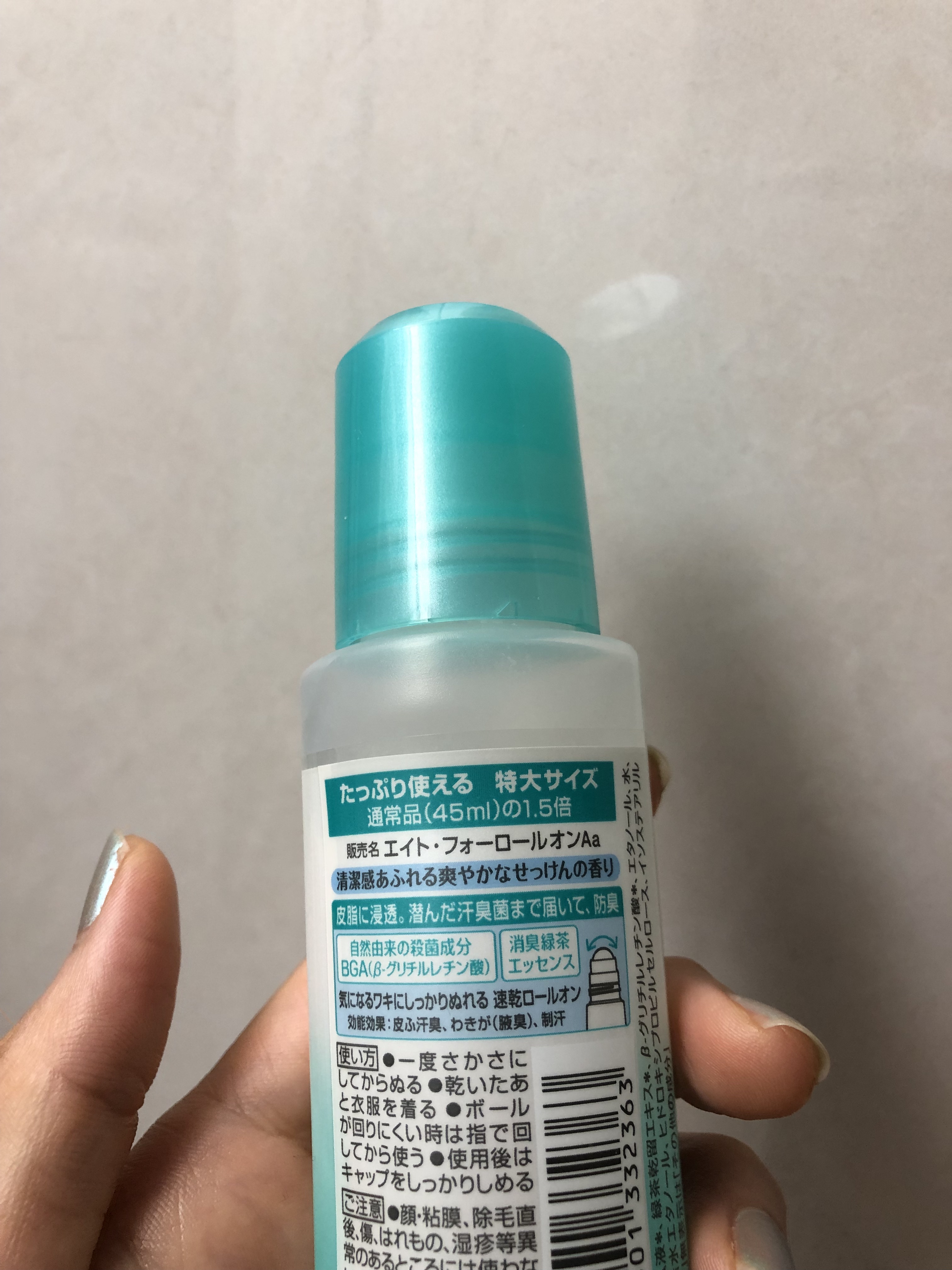 - <45ml> クロルヒドロキシアルミニウム液、緑茶乾留エキス、β-グリチルレチン酸、エタノール、水、シクロジメチコン、濃グリセリン、無水エタノール、ヒドロキシプロピルセルロース、イソステアリルアルコール、香料 <特大 68ml> クロルヒドロキシアルミニウム液、緑茶乾留エキス、β-グリチルレチン酸、エタノール、水、シクロジメチコン、濃グリセリン、無水エタノール、ヒドロキシプロピルセルロース、イソステアリルアルコール、香料
