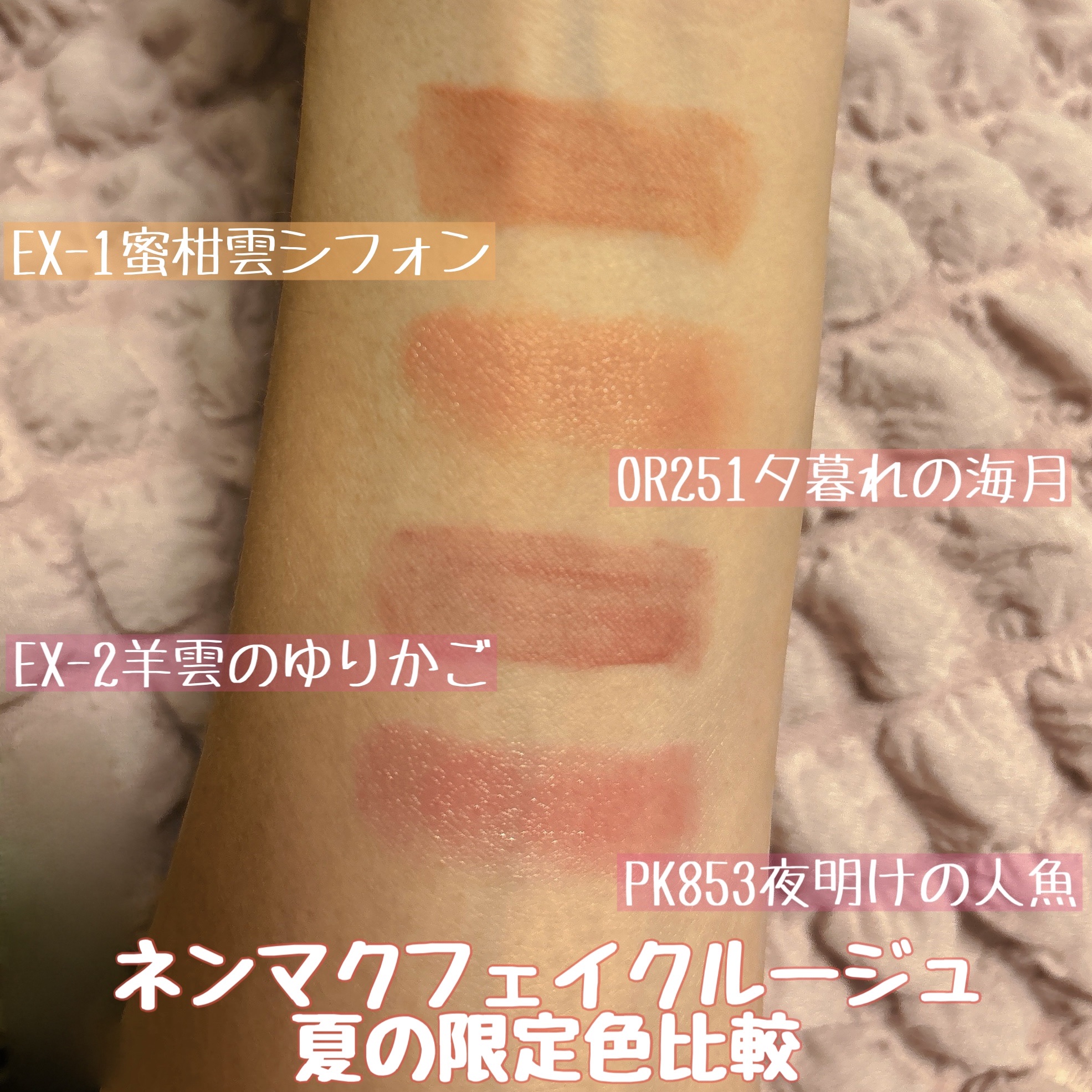 リップモンスタースフレマット👏🏻 かわいいけど濃いめの色ばかりだったから、薄めのカラー待ってました✨ ふわっとした優しい色味🧡 ・スフレマットは明るくふわふわだけど くすみあり ・ネンマクフェイクルージュは ツヤツヤ仕上がりで白みあり かわいい限定色手に入ってうはうはです🥰