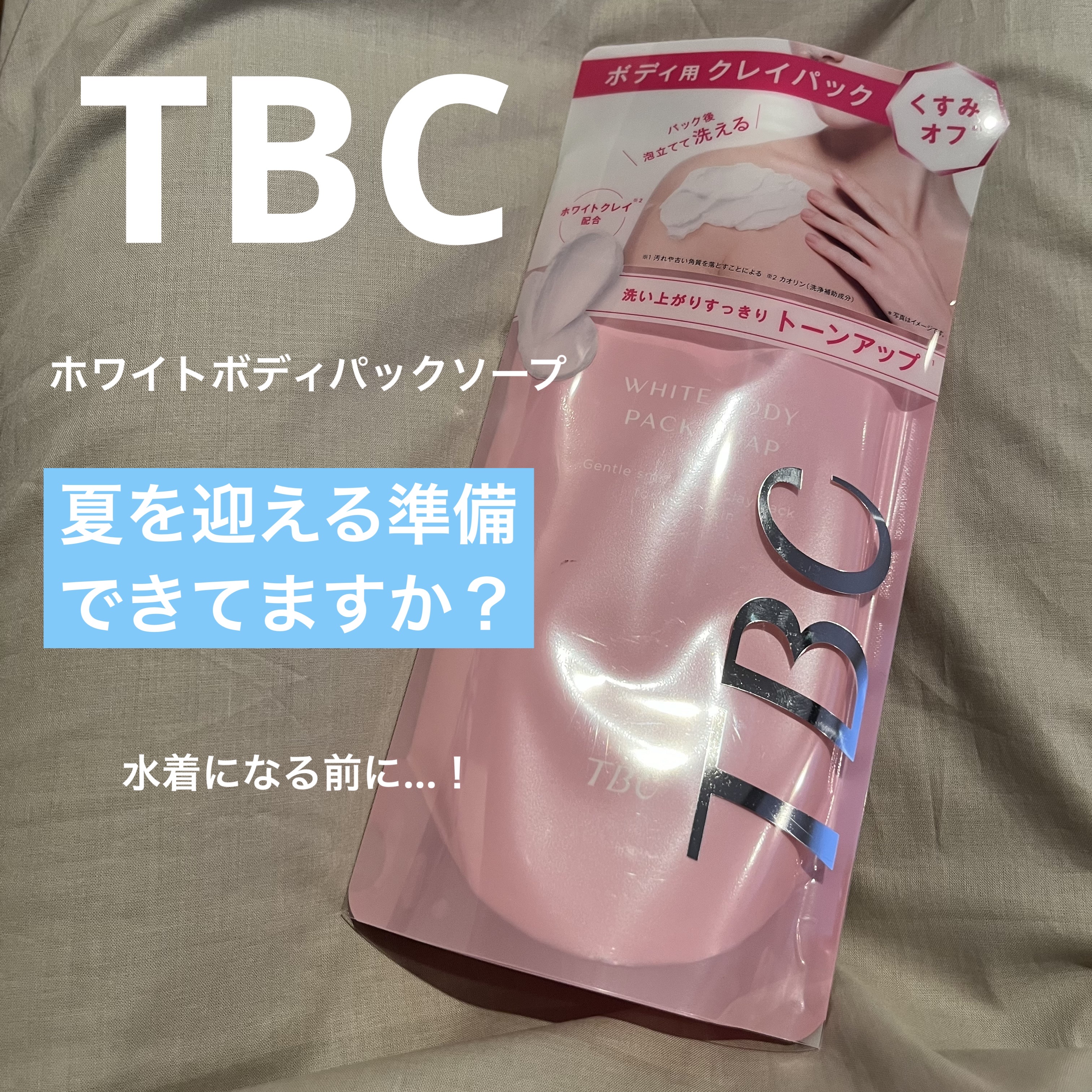 - 「TBC ホワイトボディパックソープ」は、クリーム状パックでくすみをオフ*1するボディ用クレイパックです。 ホワイトクレイ*2、発酵ローズはちみつ*3、ヨーグルトエキス*4配合。柔らかくのびのよいテクスチャーで、肌にぴったりと密着し、くすみの原因*5を吸着して洗い流します。 パック後にぬるま湯を少しずつ加えると、クリーミーな泡状になって体が洗えます。 植物性洗浄補助成分*6、カキタンニン*7配合。やさしい洗い心地で、ニオイの原因*5もすっきり洗い流します。 トリプルビタミン*8を含む美容成分配合。うるおいを保ちながらもすっきりとした洗い上がりで、くすみをオフ*1して自然な明るい肌印象に整えます。 フレッシュローズのゆたかな香り。 5つのフリー(パラベン、アルコール、タール系色素、鉱物油、シリコーンは無配合)。 *1汚れや古い角質を落とすことによる *2カオリン(洗浄補助成分) *3グルコノバクター/ハチミツ発酵液(整肌成分) *4ヨーグルト液(牛乳)(整肌成分) *5汚れや古い角質 *6キラヤ樹皮エキス、ムクロジ果皮エキス *7整肌成分 *8ビタミンE(トコフェロール)、ビタミンA誘導体(水添レチノール)、ビタミンP誘導体(グルコシルヘスペリジン)(全て整肌成分)