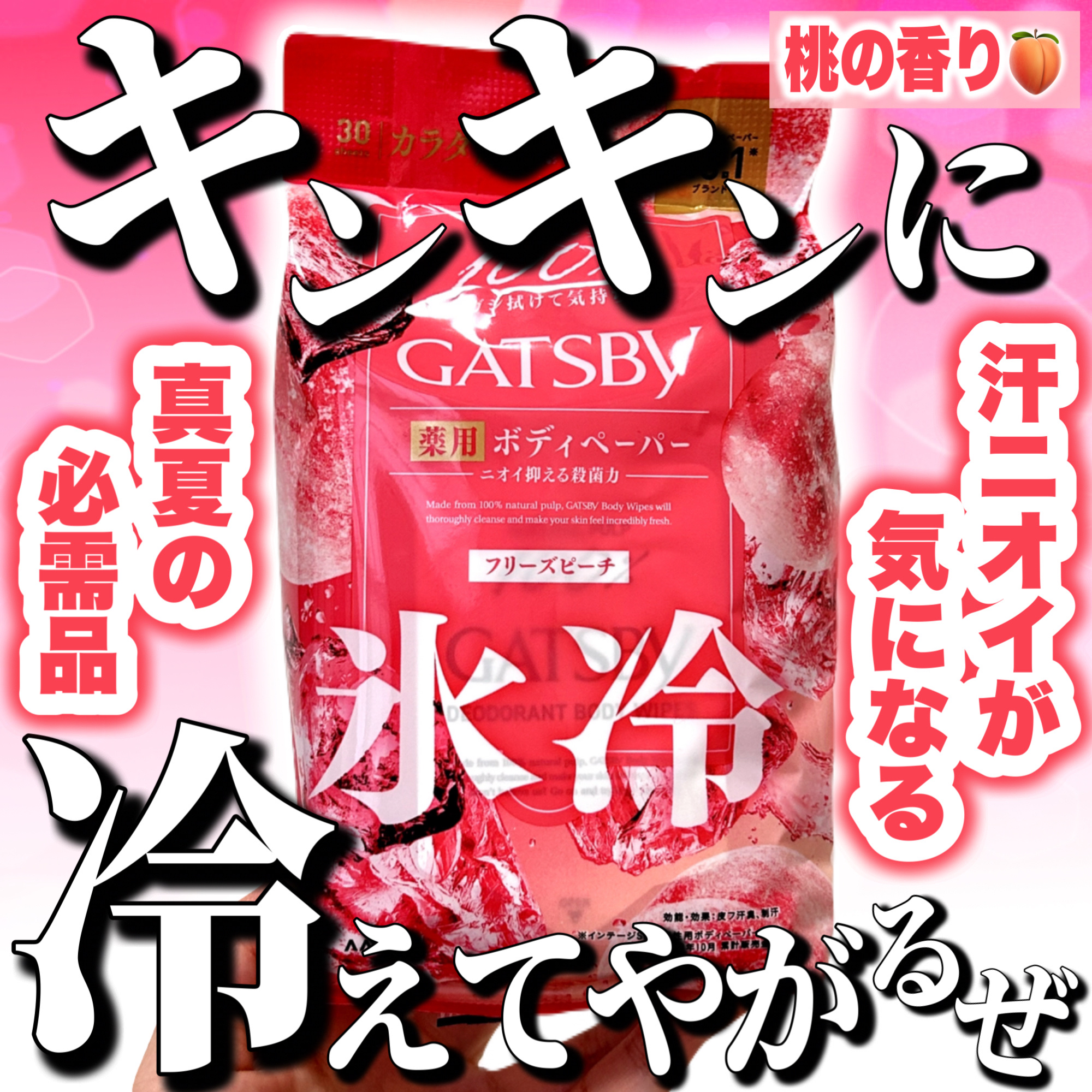 ギャッツビーのボディペーパー、去年の夏にLIPSのキャンペーンで使用してから暑い季節の必需品になりました。今年の夏も大活躍。これで拭き取ってから冷房浴びると寒いまである。フリーズピーチの香りは甘めの爽やかな香り。汗臭さを抑えてくれるので暑さで...