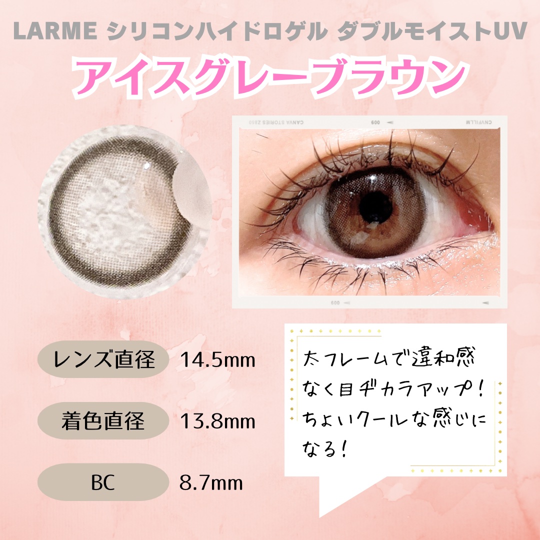 シリコーンハイドロゲルのやつに変えてから夜まで目薬ささなくても余裕でつけてられる◎ LARMEは楽天とかで購入出来るから手軽で良いよね👍🏻✨️ Rê VIA Silicone Hydrogel ▶︎ムースブラウン