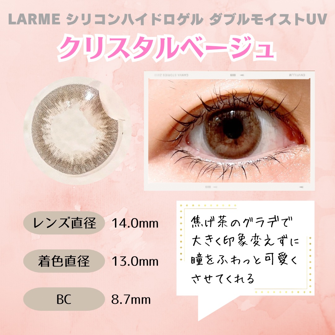 \ダブルハイライト×細フチ♡𓈒𓏸/ちゅるんと大きめに盛れる、LARME人気カラーをレビュー.ᐟ🫧𓊆ラルムシリコンハイドロゲル ダブルモイストUV𓊇 カラー:アディクティーベージュ 装用期間:ワンデー 枚数:1箱10枚入りつやん...