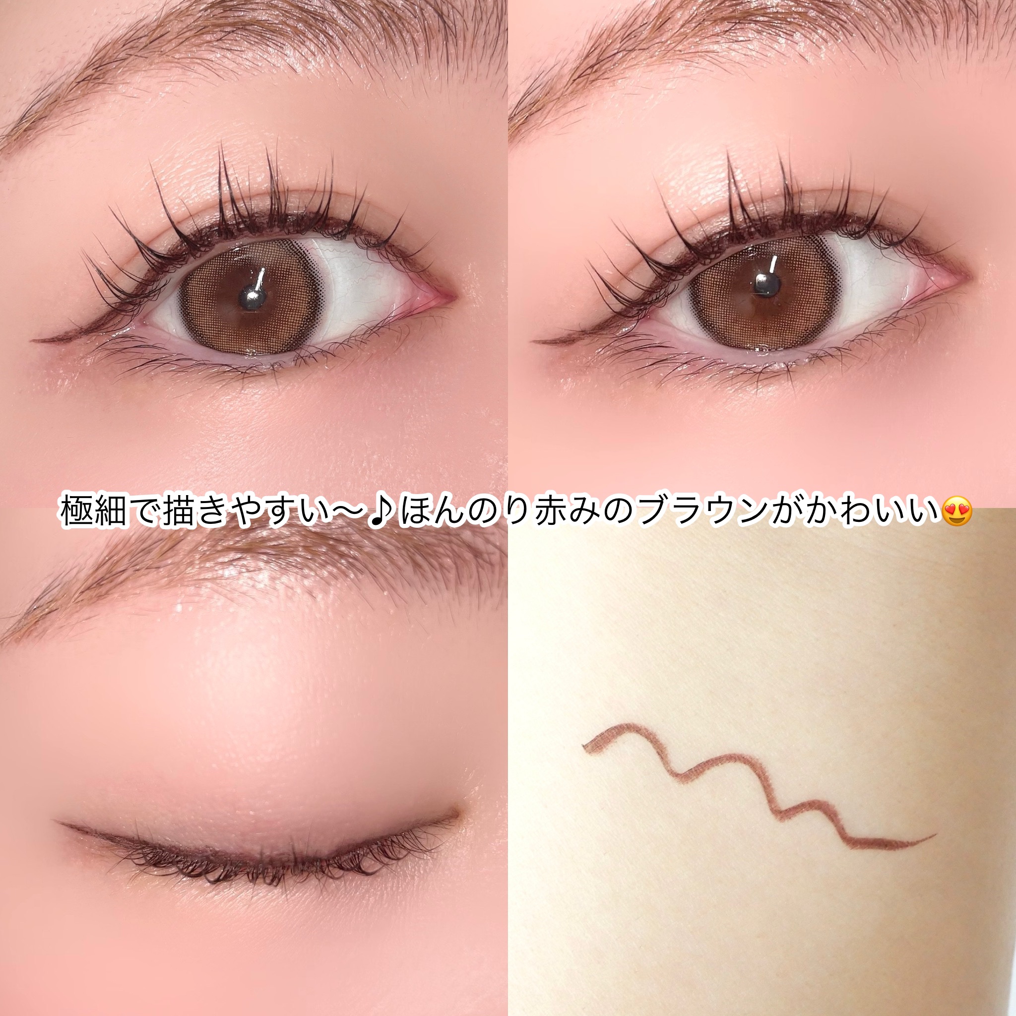 - 筆先までずっとなめらか、目尻で感動するリキッドアイライナー。 必要な量が肌にのる新設計で、まぶたの上をすべるような、滑らかな描き心地。しなやかでコシのある筆が、筆圧のコントロールを容易にし、太いラインも細いラインも思い通りに仕上げます。水、汗、涙に強いウォータープルーフタイプなのに、通常洗顔で簡単オフ。肌に色素が残らない顔料を使用。5種類の美容液成分を従来品の200%配合し、メイクしながら目元ケアまで。 ●ブラウンブラック ※2020年9月12日 バラエティショップ先行発売 ●漆黒ブラック ※2020年12月頃発売予定 ●ナチュラルブラウン ※2020年12月頃発売予定 ●シフォンブラウン 「毎日メイクに透明感と抜け感」 ブラウンでも、グレーでも、ベージュでもないニュアンスカラー。 自然な印影で素の目元を際立て、頑張りすぎない、ふんわりとした目元に。 ●アプリコットブラウン 「じゅわっと血色感。 肌に馴染むおしゃれカラー」 温かみのあるアプリコットがじゅわっと滲む血色感を目元に演出。 肌馴染みが良いので、カラーライナーに抵抗がある方もブラウンの延長線上で楽しめる、使いやすい色味です。 ”ちょっとオシャレ”な空気感を演出するカラー。 ●ピンクショコラ アイライナー 「ピンクが溶け込む濃厚ブラウン」 肌馴染みが良く、目元にじんわり血色感をプラス。 さりげなく女性らしさが加速するようなカラー。 ●ピスタチオラテ (2022年7月29日(金)発売) 「“目尻”に抜け感アクセント」 肌に馴染むのに映える絶妙なグリーン。 トレンドカラーに“くすみ”と“抜け感”をプラスしたまろやかな発色。 ●マスタードブラウン 「“イエロー”が揺れる、大人の洒落色」 (2022年7月29日(金)発売) まるで太陽のような暖かさを感じる新しいブラウン。 ほんのり感じるイエローでメイクが一気に垢抜ける稀有な色。 ●シフォンピンク(2023年2月10日発売) 「ふんわり柔らか"まろみピンク"」 甘くなりすぎない青みニュアンスで目元の透明感UP。 目元を引き締め、ピンクメイクにありがちな腫れぼったさを解消。 ●ミルクカプチーノ(2023年4月21日発売) まろやかな深みの“優しい締め色” どんなメイクにも合わせやすいカラー。 自然な陰影でさりげなく目幅を拡張します。 ●グレーカシミア(2023年10月1日発売) ブラウンがほんのり溶け込んだ、暖色グレー まろやかな発色で、パーソナルカラーを問わず肌に馴染む 目元の陰影になりすまし、抜け感と目力を欲張りに叶える ●ダークフィグ(2024年6月1日発売) するする”なめらか。描きやすいのに、落ちにくい。 クッキリ可愛いほの甘ダークブラウン ●ピーチモカ(2024年8月1日発売) ふわっと自然に盛れる“桃色ブラウン” ほんのり血色感で目元にうるみ感を演出 ●スターダストブラウン(2024年12月11日発売) キラッと繊細に輝く''星屑ブラウン'' 透け感のあるダークブラウンの色味とラメの輝きが、目元に艶のある立体感を演出 ●チャコールモカ(2025年4月10日発売) 目元を締める''深みグレージュ'' 黄みや赤みに偏りすぎない絶妙な色設計で、自然に目元を強調