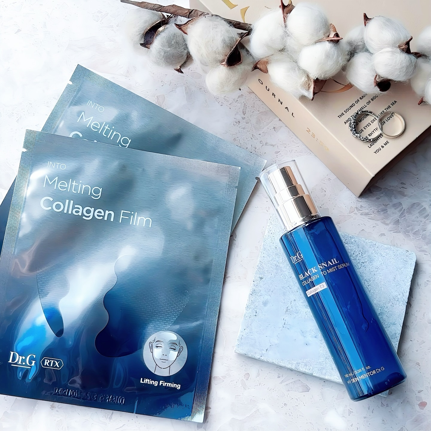 第3世代のリフティングフィルム🫧 Dr.G独自の特許工法で作られた 99.86%高純度マリンコラーゲンを使用 ブラックスネイル成分を使用し、ダブルリポソーム工法で美容成分をより多く、安定して肌に届ける