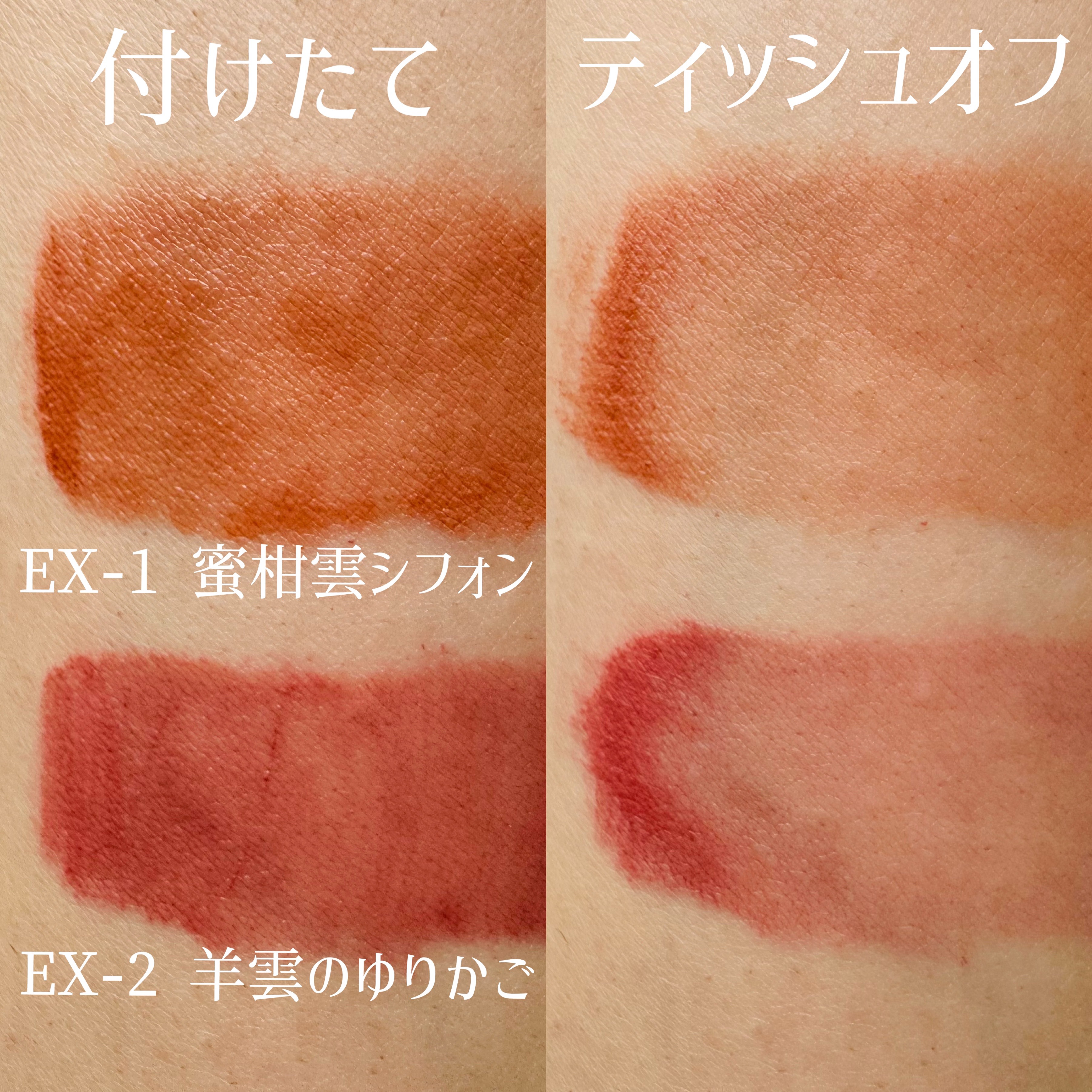 - <EX-1 蜜柑雲シフォン(限定)> ジメチコン、合成フルオロフロゴパイト、イソドデカン、メチルトリメチコン、シリカ、(ジメチコン/ビニルジメチコン)クロスポリマー、トリメチルシロキシケイ酸、(アクリレーツ/ジメチコン)コポリマー、ポリグリセリル-3ポリジメチルシロキシエチルジメチコン、パルミチン酸デキストリン、(ジビニルジメチコン/ジメチコン)コポリマー、ジステアルジモニウムヘクトライト、水、トリ(カプリル酸/カプリン酸)グリセリル、炭酸プロピレン、(C12,13)パレス-23、(C12,13)パレス-3、フェノキシエタノール、メチルパラベン、エチルパラベン、(+/-)酸化チタン、酸化鉄、水酸化Al、黄4、青1、赤202、赤226 <EX-2 羊雲のゆりかご(限定)> ジメチコン、合成フルオロフロゴパイト、イソドデカン、メチルトリメチコン、シリカ、(ジメチコン/ビニルジメチコン)クロスポリマー、トリメチルシロキシケイ酸、(アクリレーツ/ジメチコン)コポリマー、ポリグリセリル-3ポリジメチルシロキシエチルジメチコン、パルミチン酸デキストリン、(ジビニルジメチコン/ジメチコン)コポリマー、ジステアルジモニウムヘクトライト、水、トリ(カプリル酸/カプリン酸)グリセリル、炭酸プロピレン、(C12,13)パレス-23、(C12,13)パレス-3、フェノキシエタノール、メチルパラベン、エチルパラベン、(+/-)酸化チタン、酸化鉄、水酸化Al、黄4、青1、赤202、赤226 <M01 深紅の闇> ジメチコン、合成フルオロフロゴパイト、イソドデカン、メチルトリメチコン、シリカ、(ジメチコン/ビニルジメチコン)クロスポリマー、トリメチルシロキシケイ酸、(アクリレーツ/ジメチコン)コポリマー、ポリグリセリル-3ポリジメチルシロキシエチルジメチコン、パルミチン酸デキストリン、ジステアルジモニウムヘクトライト、(ジビニルジメチコン/ジメチコン)コポリマー、トリ(カプリル酸/カプリン酸)グリセリル、水、炭酸プロピレン、(C12,13)パレス-23、(C12,13)パレス-3、フェノキシエタノール、メチルパラベン、エチルパラベン、(+/-)酸化チタン、酸化鉄、水酸化Al、黄4、青1、赤202、赤226 <M02 枯れない桜> ジメチコン、合成フルオロフロゴパイト、イソドデカン、メチルトリメチコン、シリカ、(ジメチコン/ビニルジメチコン)クロスポリマー、トリメチルシロキシケイ酸、(アクリレーツ/ジメチコン)コポリマー、ポリグリセリル-3ポリジメチルシロキシエチルジメチコン、パルミチン酸デキストリン、ジステアルジモニウムヘクトライト、(ジビニルジメチコン/ジメチコン)コポリマー、トリ(カプリル酸/カプリン酸)グリセリル、水、炭酸プロピレン、(C12,13)パレス-23、(C12,13)パレス-3、フェノキシエタノール、メチルパラベン、エチルパラベン、(+/-)酸化チタン、酸化鉄、水酸化Al、黄4、青1、赤202、赤226 <M03 祝いの紙吹雪> ジメチコン、合成フルオロフロゴパイト、イソドデカン、メチルトリメチコン、シリカ、(ジメチコン/ビニルジメチコン)クロスポリマー、トリメチルシロキシケイ酸、(アクリレーツ/ジメチコン)コポリマー、ポリグリセリル-3ポリジメチルシロキシエチルジメチコン、パルミチン酸デキストリン、ジステアルジモニウムヘクトライト、(ジビニルジメチコン/ジメチコン)コポリマー、トリ(カプリル酸/カプリン酸)グリセリル、水、炭酸プロピレン、(C12,13)パレス-23、(C12,13)パレス-3、フェノキシエタノール、メチルパラベン、エチルパラベン、(+/-)酸化チタン、酸化鉄、水酸化Al、黄4、青1、赤202、赤226 <M04 ゴーストムーン0:00AM> ジメチコン、合成フルオロフロゴパイト、イソドデカン、メチルトリメチコン、シリカ、(ジメチコン/ビニルジメチコン)クロスポリマー、トリメチルシロキシケイ酸、(アクリレーツ/ジメチコン)コポリマー、ポリグリセリル-3ポリジメチルシロキシエチルジメチコン、パルミチン酸デキストリン、ジステアルジモニウムヘクトライト、(ジビニルジメチコン/ジメチコン)コポリマー、トリ(カプリル酸/カプリン酸)グリセリル、水、炭酸プロピレン、(C12,13)パレス-23、(C12,13)パレス-3、フェノキシエタノール、メチルパラベン、エチルパラベン、(+/-)酸化チタン、酸化鉄、水酸化Al、黄4、青1、赤202、赤226 <M05 泥霧> ジメチコン、合成フルオロフロゴパイト、イソドデカン、メチルトリメチコン、シリカ、(ジメチコン/ビニルジメチコン)クロスポリマー、トリメチルシロキシケイ酸、(アクリレーツ/ジメチコン)コポリマー、ポリグリセリル-3ポリジメチルシロキシエチルジメチコン、パルミチン酸デキストリン、ジステアルジモニウムヘクトライト、(ジビニルジメチコン/ジメチコン)コポリマー、トリ(カプリル酸/カプリン酸)グリセリル、水、炭酸プロピレン、(C12,13)パレス-23、(C12,13)パレス-3、フェノキシエタノール、メチルパラベン、エチルパラベン、(+/-)酸化チタン、酸化鉄、水酸化Al、黄4、青1、赤202、赤226 <M06 掘りたて紅土> ジメチコン、合成フルオロフロゴパイト、イソドデカン、メチルトリメチコン、シリカ、(ジメチコン/ビニルジメチコ